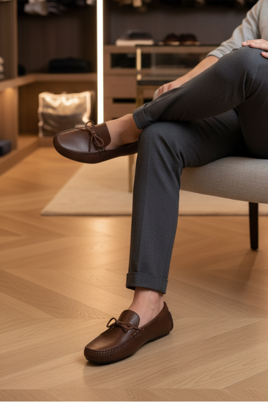 Designed for comfort and style, these brown driving mocs offer a perfect grip and a sleek look. Ideal for everyday casual wear or long drives.