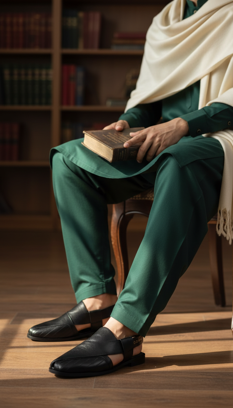 Stylish black-colored men's casual Peshawari sandals with a classic design and comfortable fit, perfect for a traditional yet modern look.