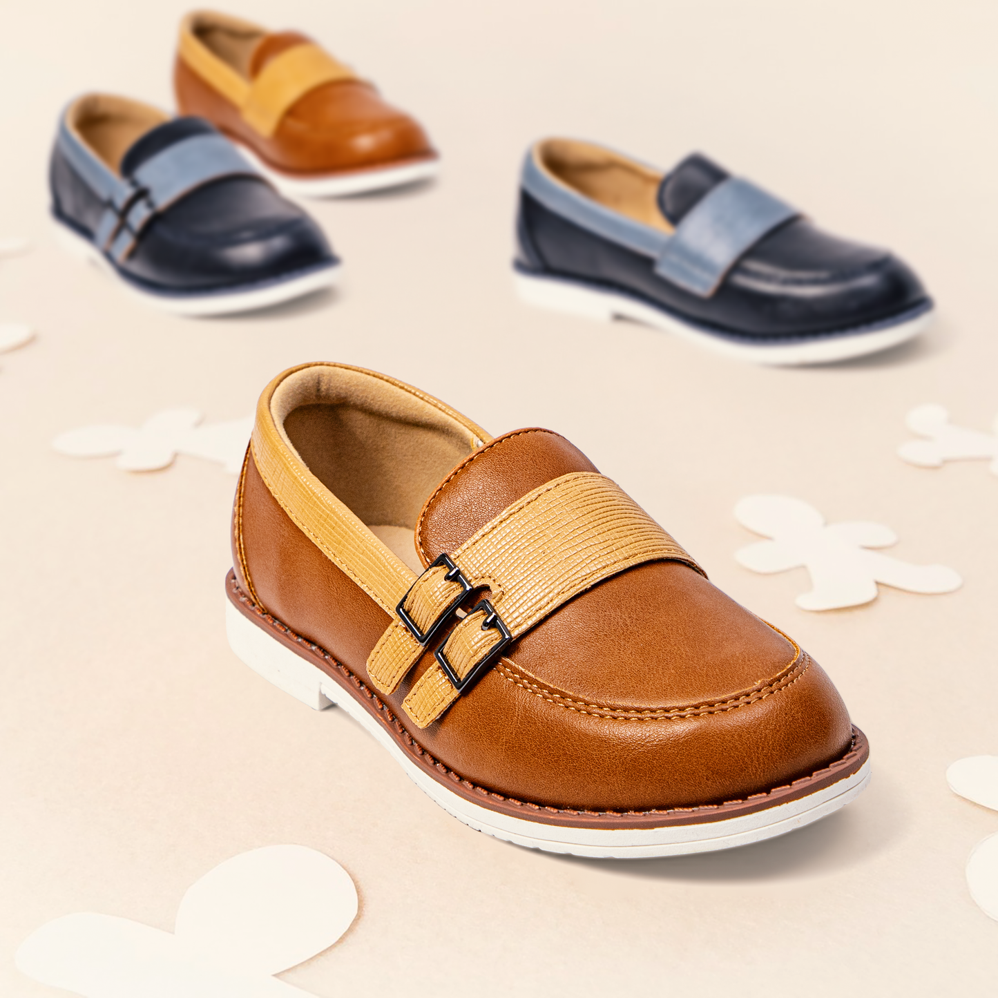 Elegant tan formal loafers for girls, combining sophistication and comfort for formal occasions.