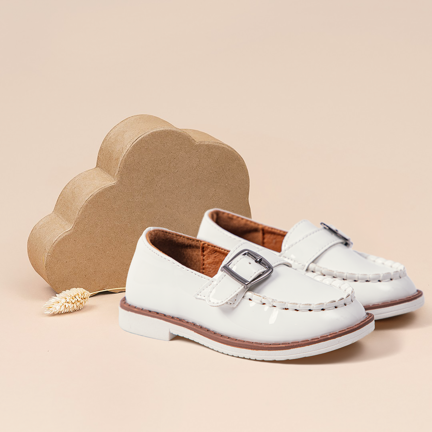Classic white formal loafers for boys, offering a refined and polished look for formal events.