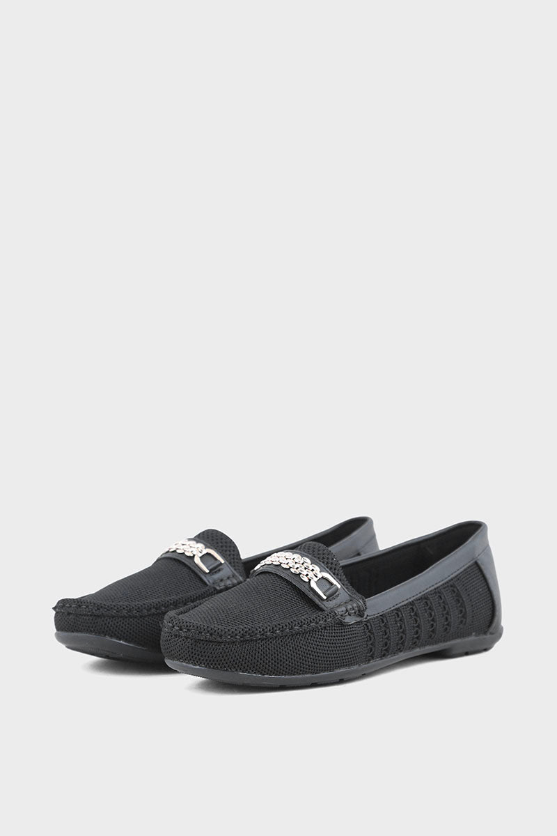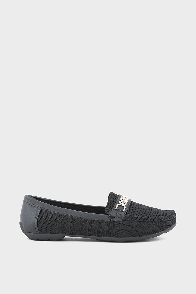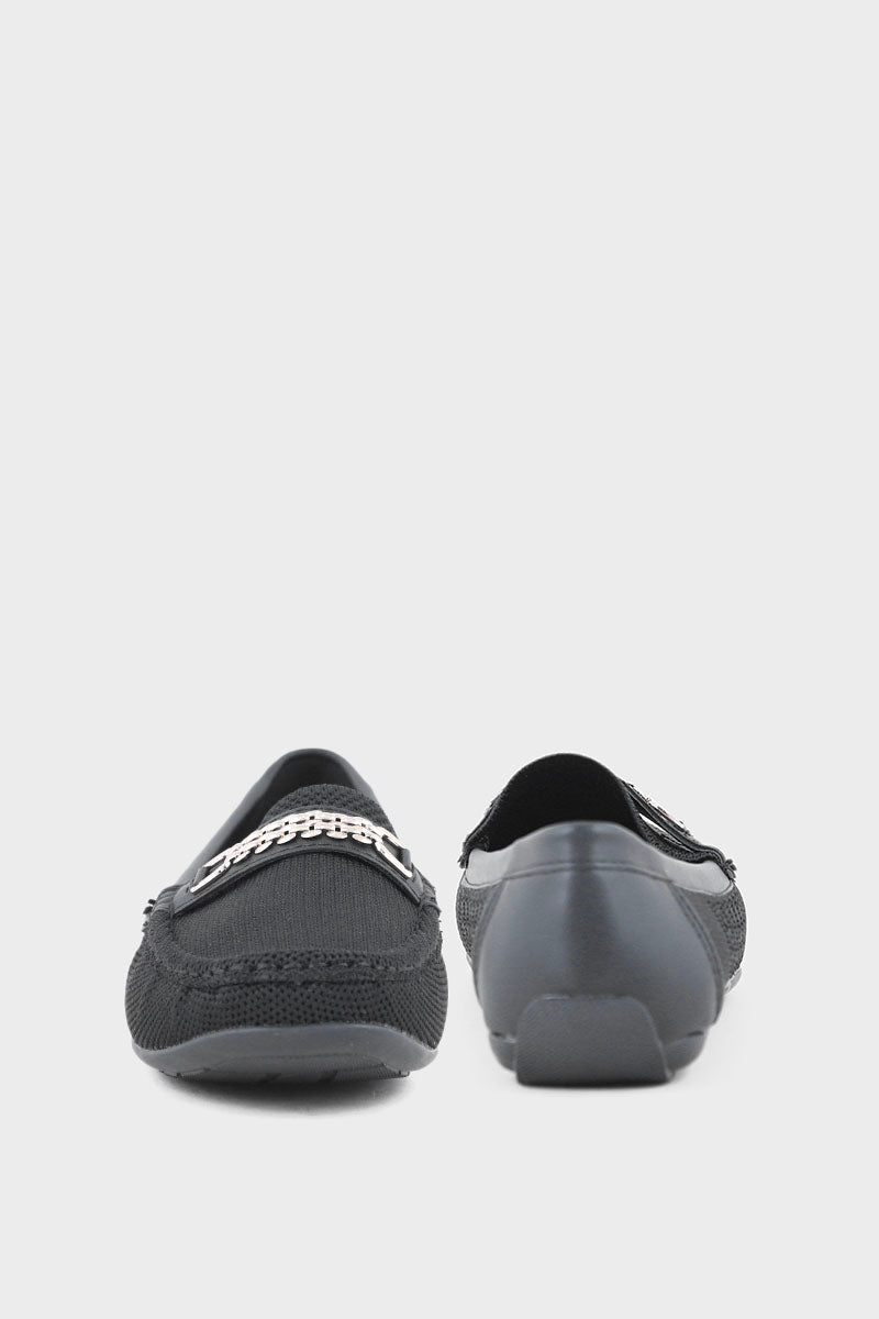 Classic black moccasins, offering timeless comfort and effortless style for everyday wear.
