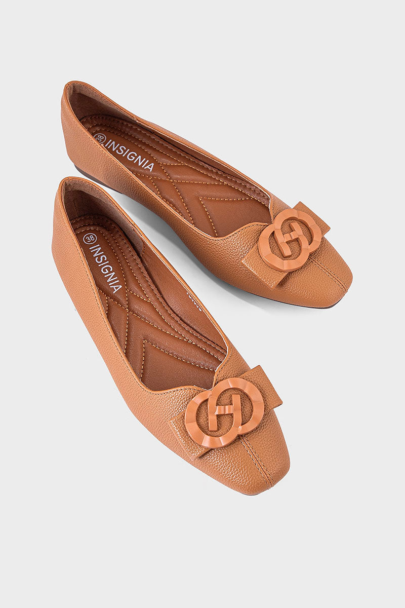Add a pop of color to your outfit with these tan casual pumps, combining style and comfort for any occasion.