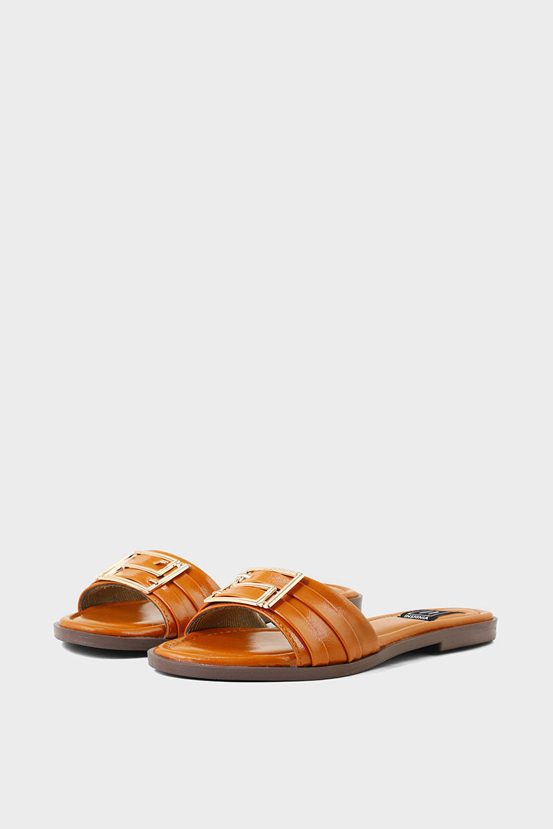 Step out in style with these tan casual slip-ons, blending comfort with a touch of vibrant color.
