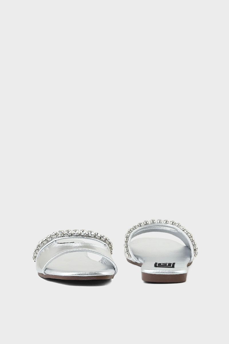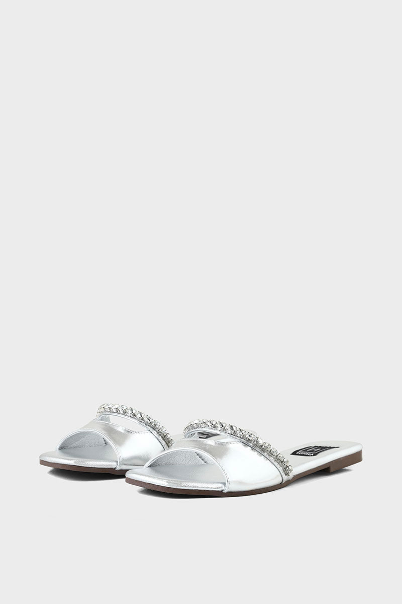 Add a touch of shine to your casual wardrobe with these silver slip-ons, blending comfort with a hint of glamour.