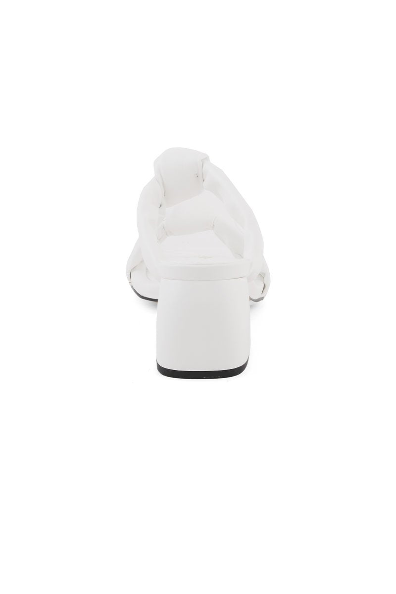 These casual golden slides are made with the patent leather, having double arch straps, shaped to a round toe and then set over a small block heel.