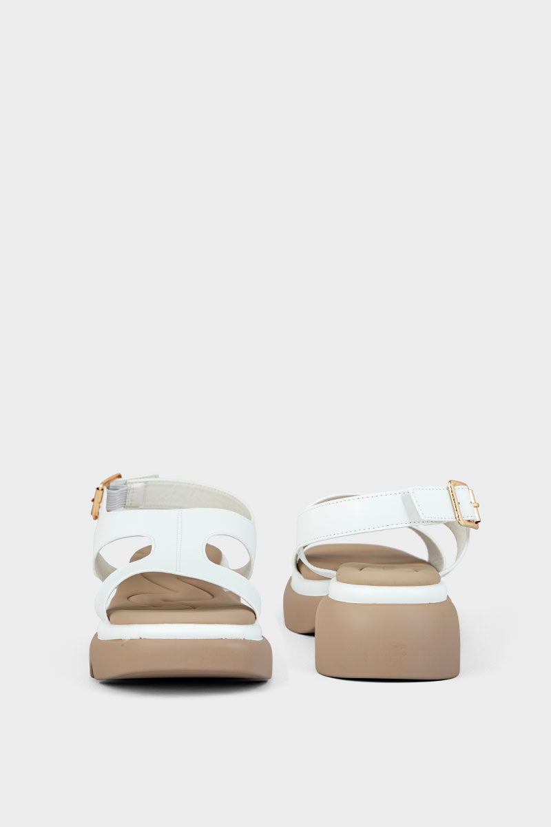 Elegant white comfort sandal with a cushioned design, perfect for all-day support and a stylish, relaxed look.