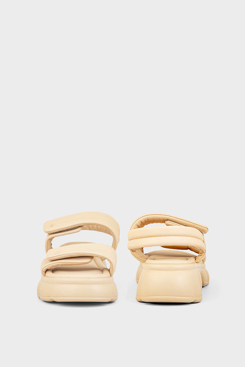 Chic beige comfort sandal with a cushioned design, perfect for all-day support and a stylish look.