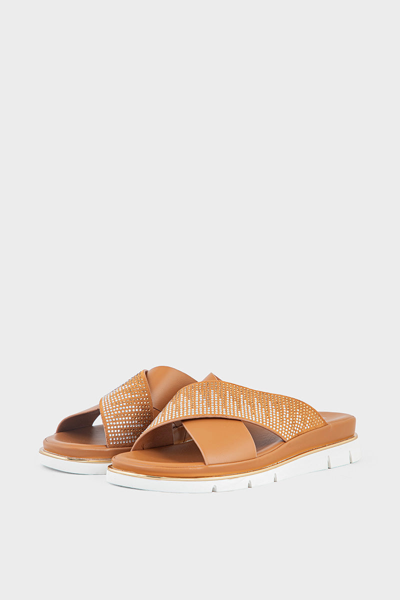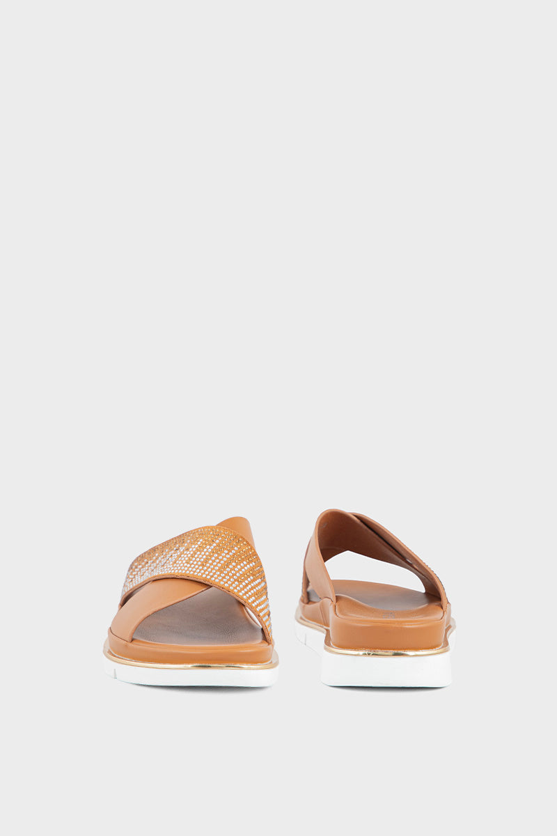 Chic tan comfort slip-on with a cushioned design and sleek finish, perfect for all-day wear and a relaxed, stylish look.