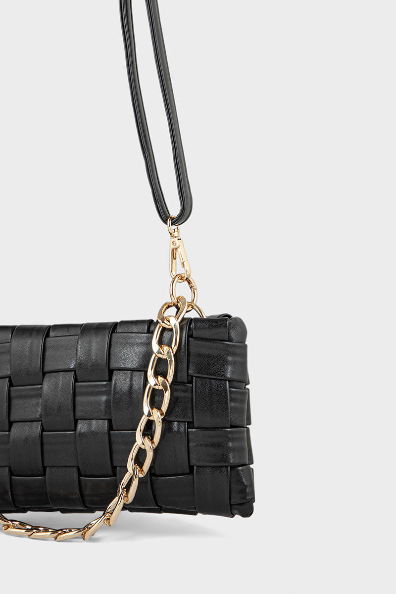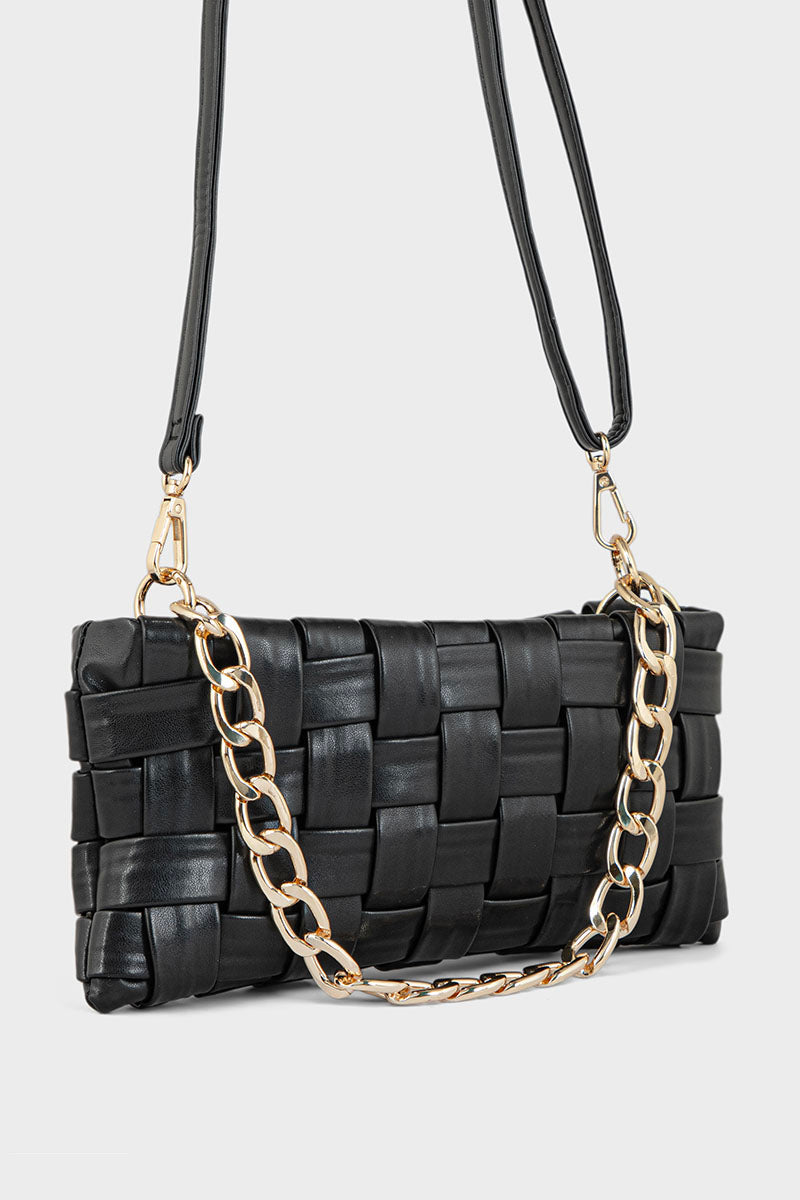 Trendy black cross-shoulder bag with a sleek design and spacious interior, perfect for a stylish and functional look.