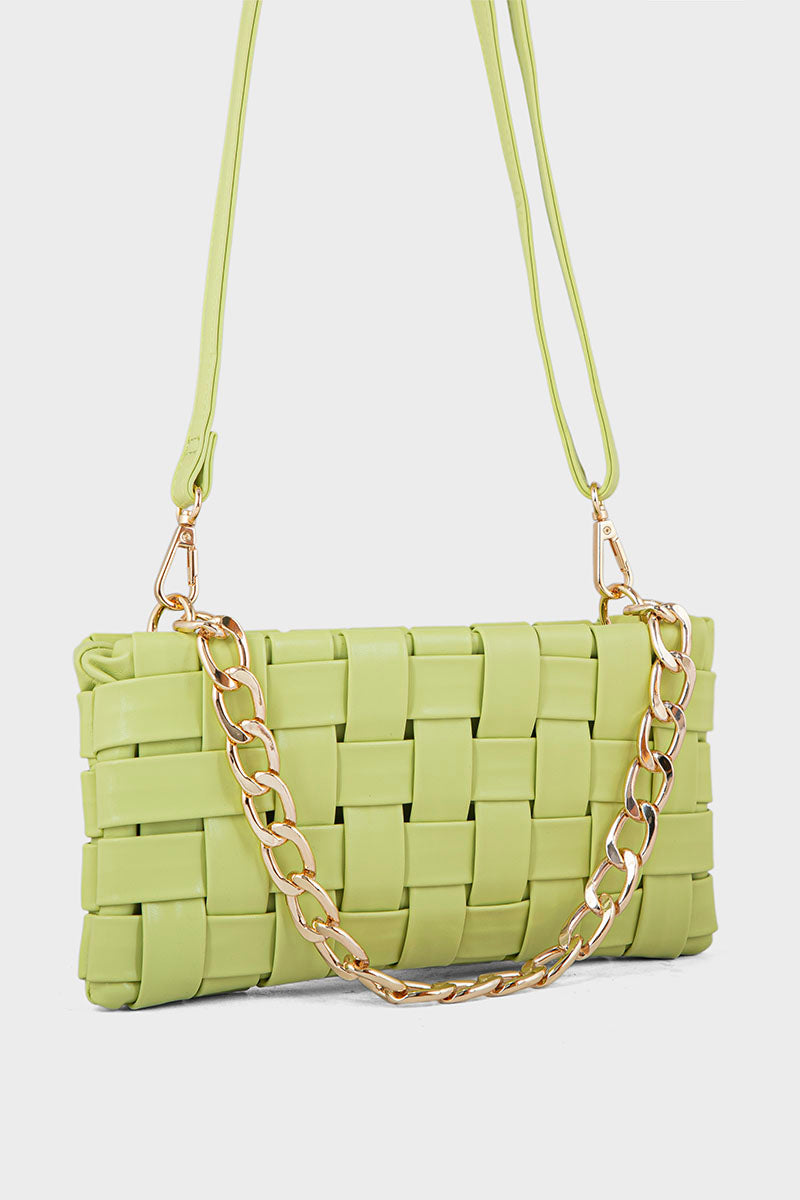 Trendy green cross-shoulder bag with a sleek design and spacious interior, perfect for a stylish and functional look.