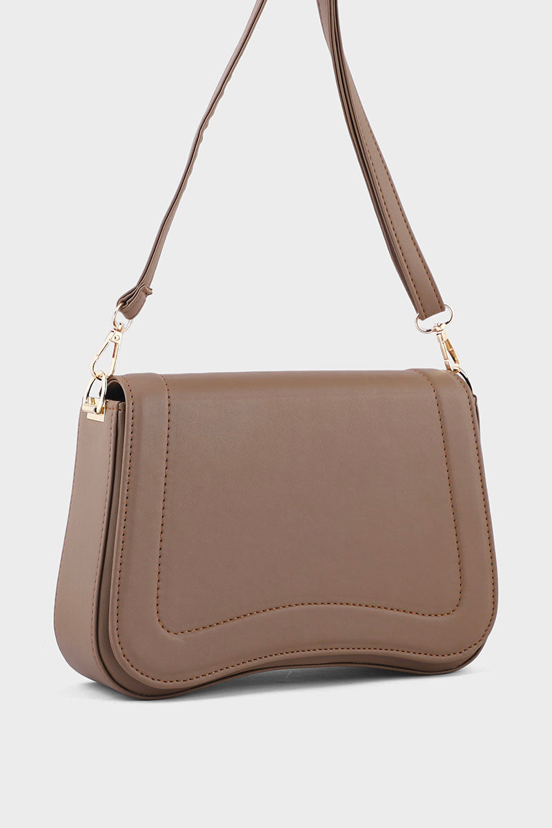 Khaki crossbody bag that blends well with any casual outfit, offering both comfort and style.