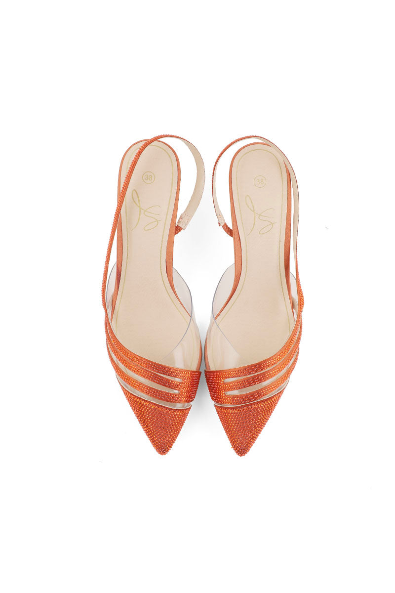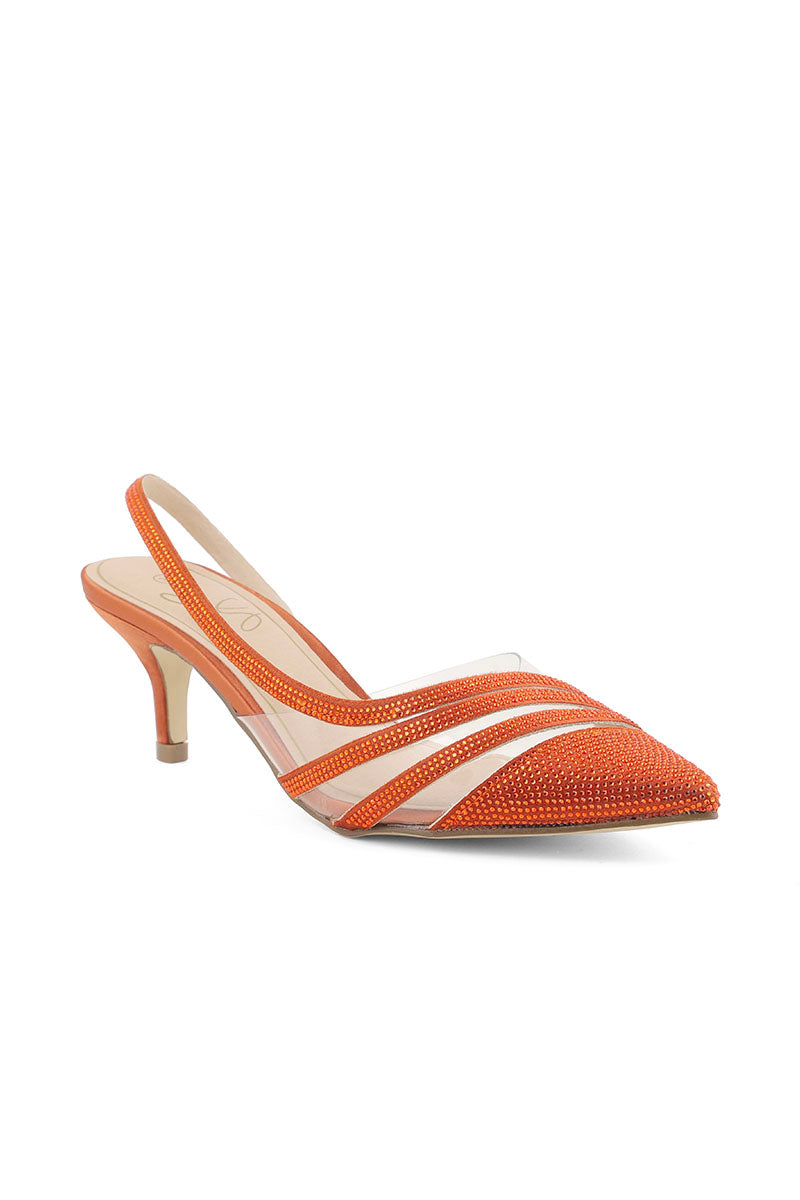 These brown heels are made with lustrous top in combination with PVC, having the sling-back strap for perfect fit and then set over a kitten heel.