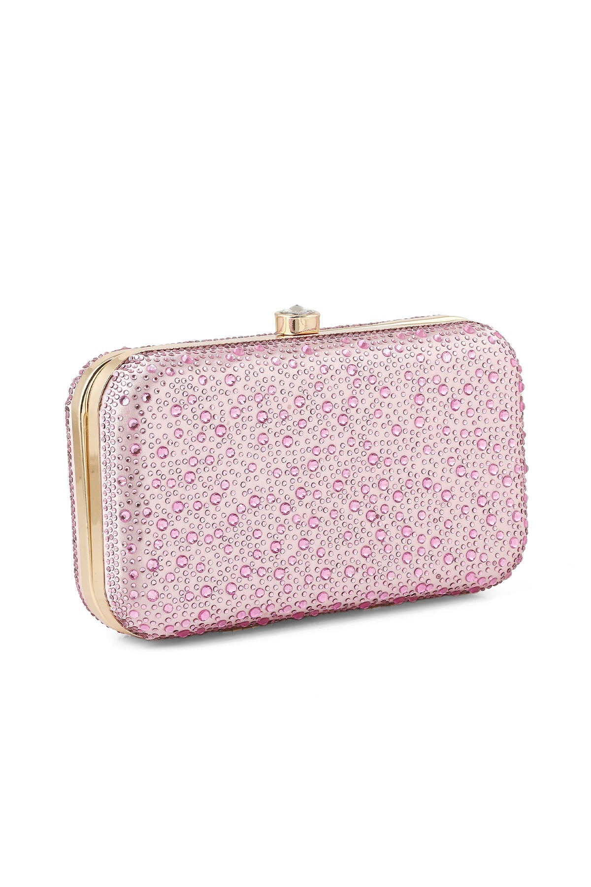 This skpink color bag is made of fine leather. It is a hand-carry bag and pink glitters on the exterior make it fancy.