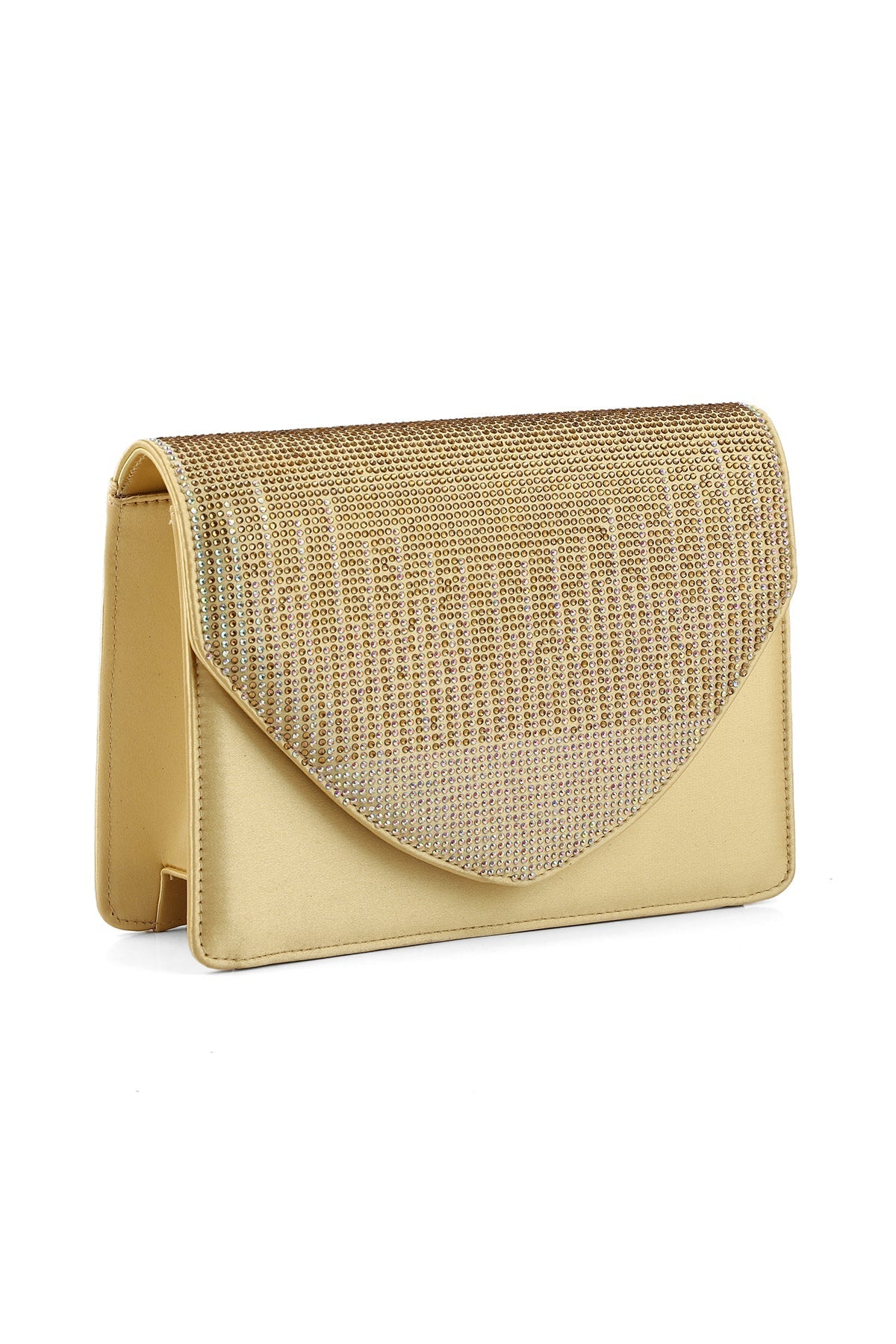 This yellow clutch bag is made with the finest satin, having flap at front that has beautiful matter design on it for a chic look.