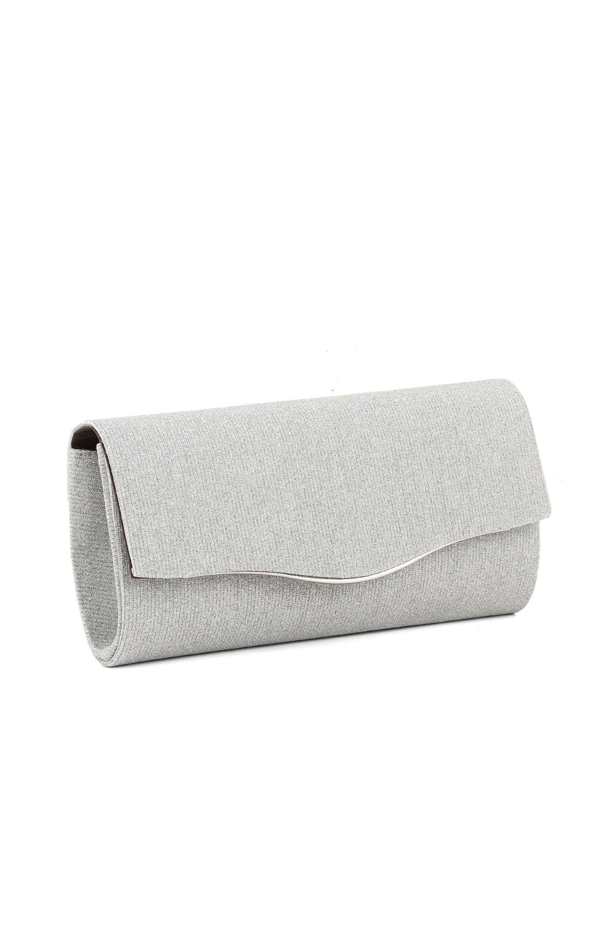 This silver clutch is made with the lustrous fabric, having stylish flap that closes with a lock at front.