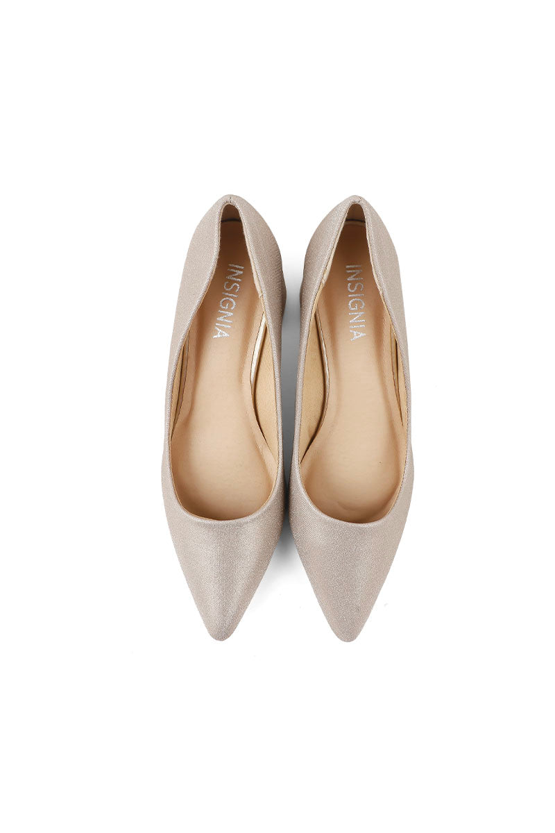 These champagne pumps are made with the plain patent leather with a sharp pointed toe and then set over the chunky block heel.