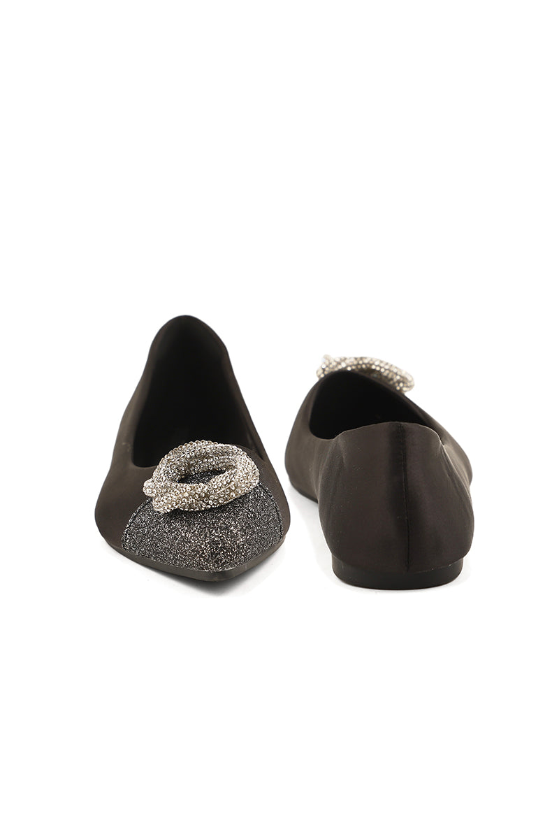 These black pumps are made with the light and dark colors, having a metallic buckle at top and then set to a pointed toe.