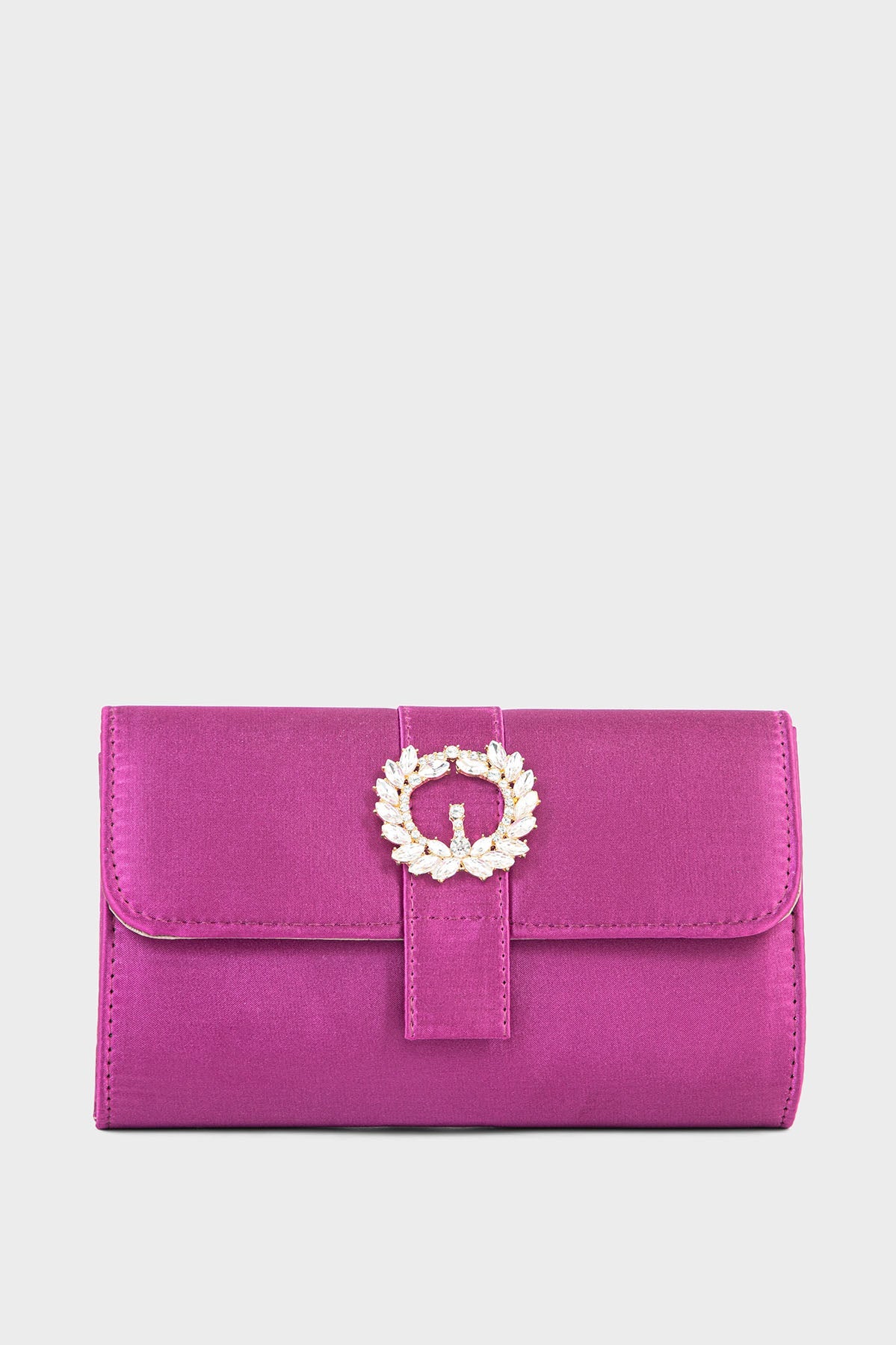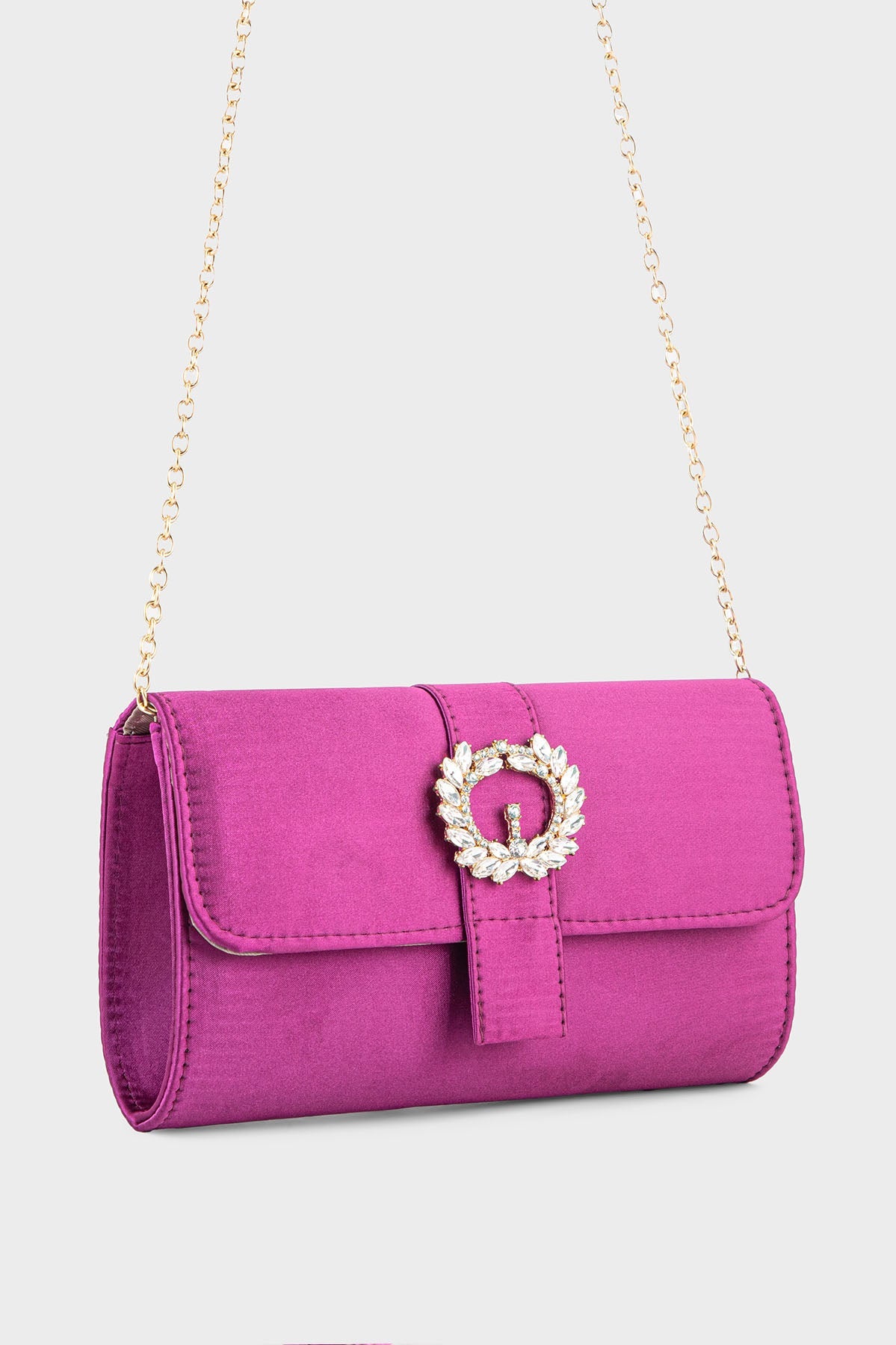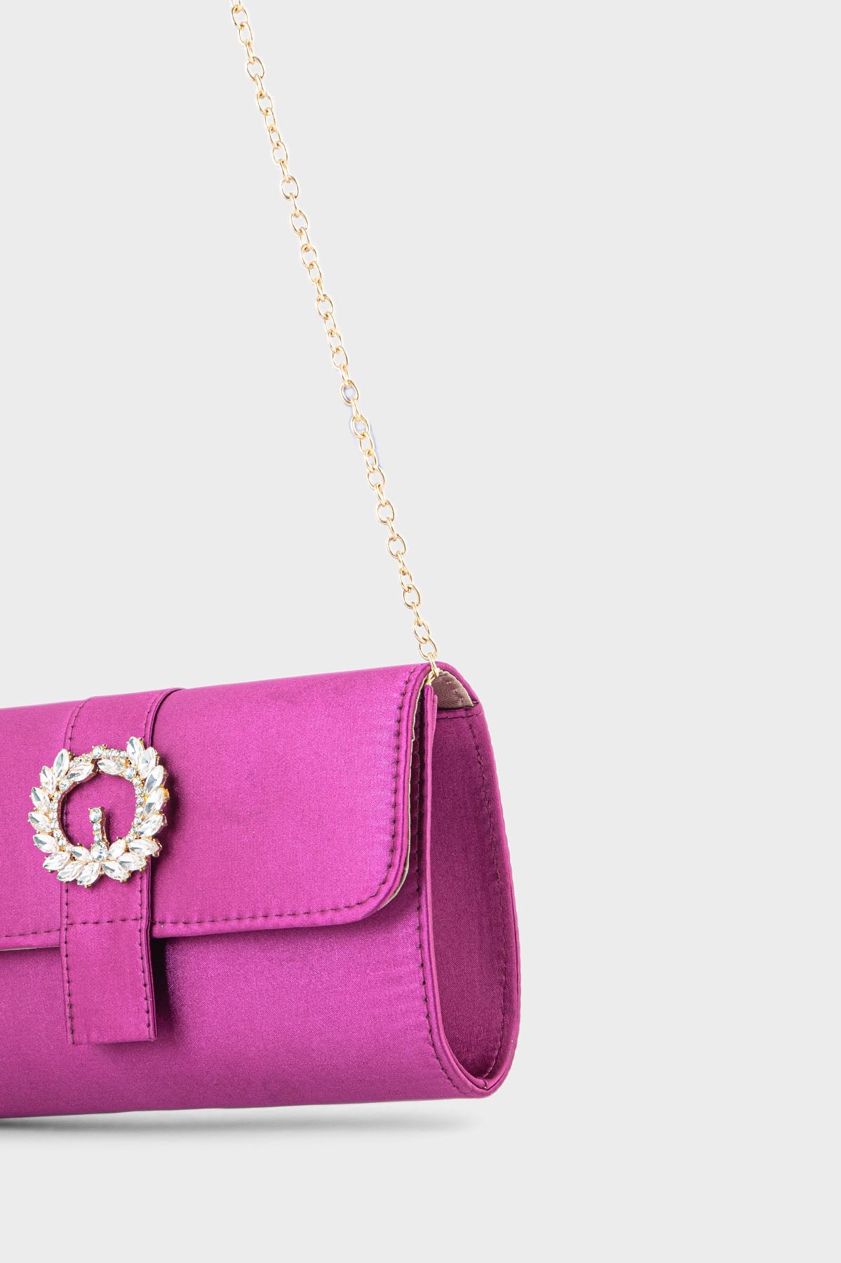 With its vibrant purple color and sleek flap design, this shoulder bag adds a bold touch to your ensemble.
