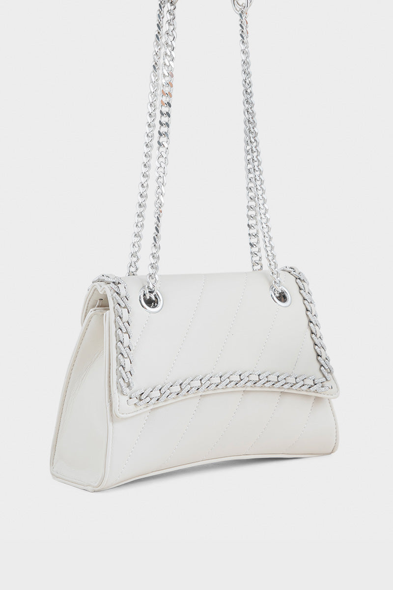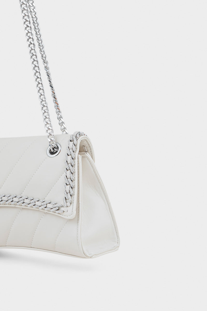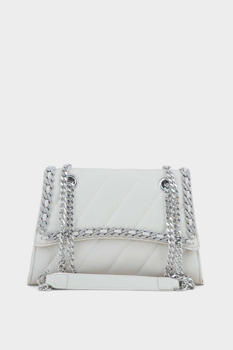 Elevate your look with this Flap Shoulder Bag in crisp White. Stylish and practical, perfect for adding a chic touch to any outfit.