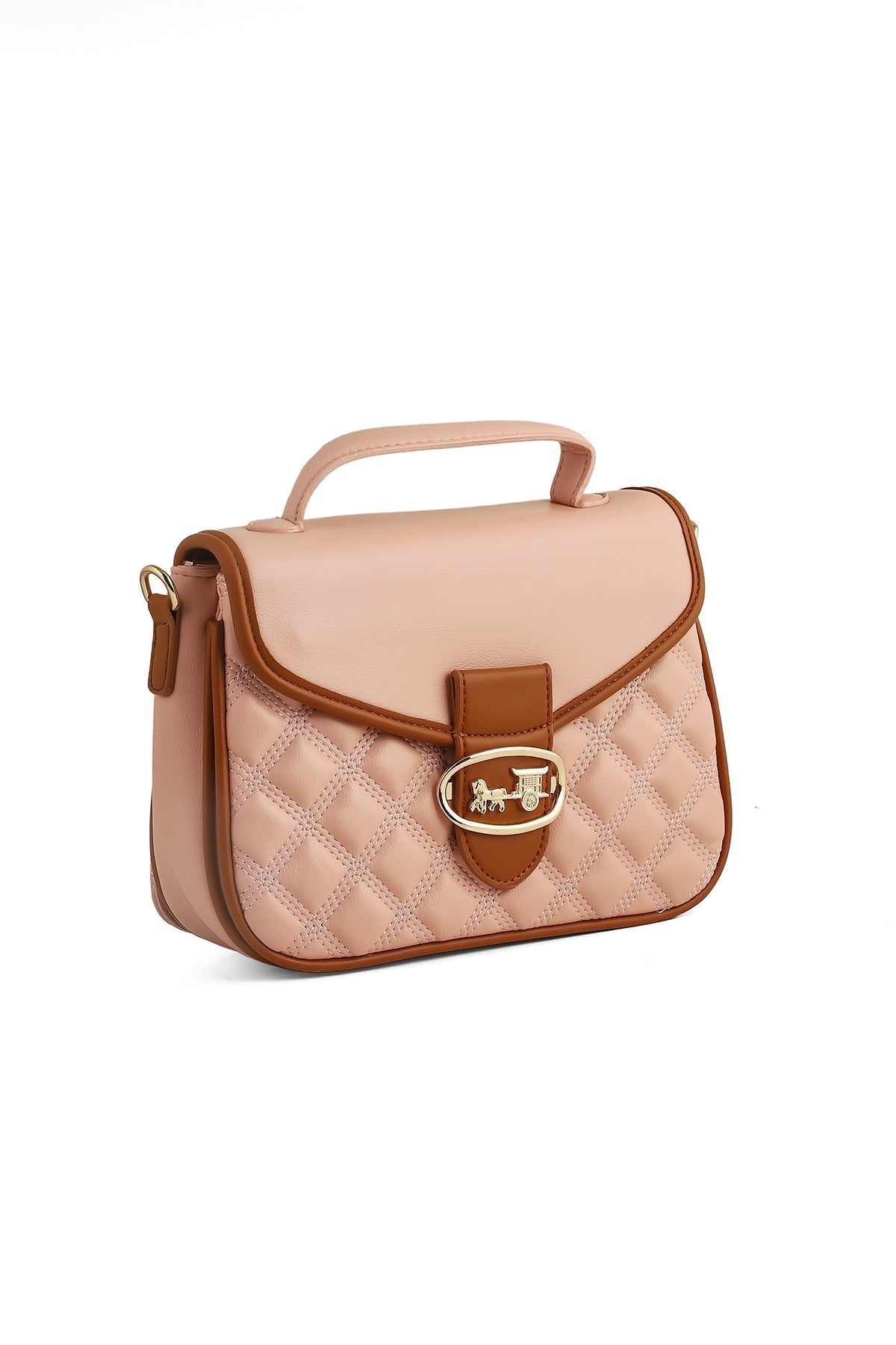 This pink bag is made with the plush leather, having the flap-over design that closes at a twist lock.