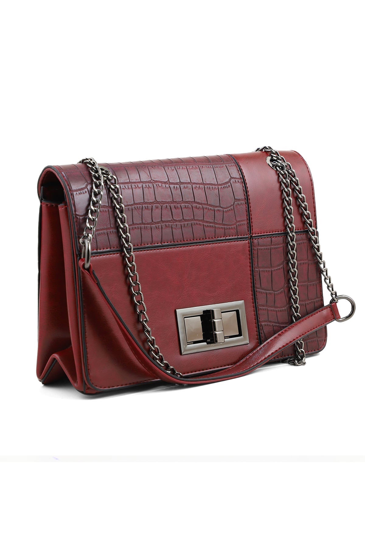 This is a maroon color bag, a small bag, the bag has one strap that makes it super cool