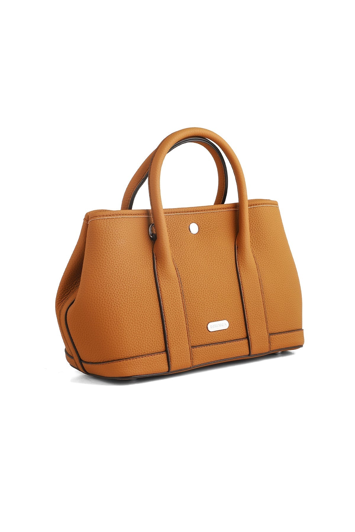 This mustard bag is made with the fine leather having the simple aesthetics, and two top handles.