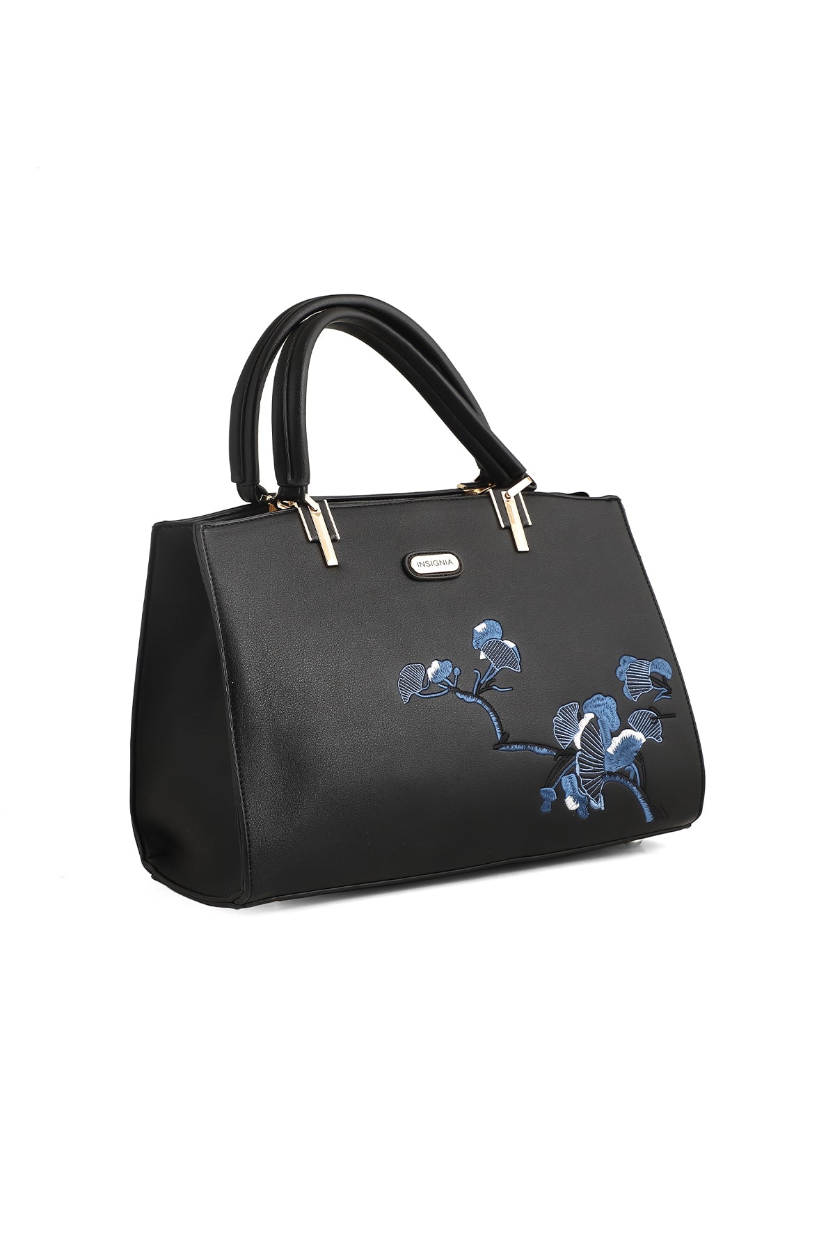 This black bag is crafted with the finest leather, having digital print at front right and finished with two handles at top.