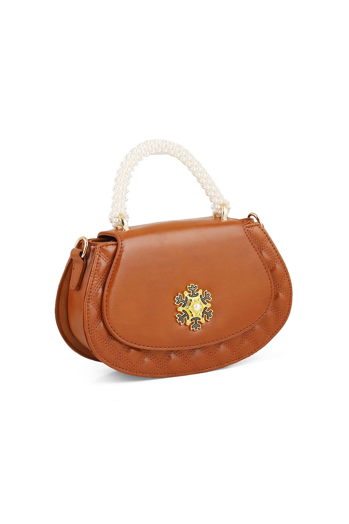 This brown bag is made from the fine leather, having one top handle and one compartment inside which are spacious enough to carry you daily essentials.