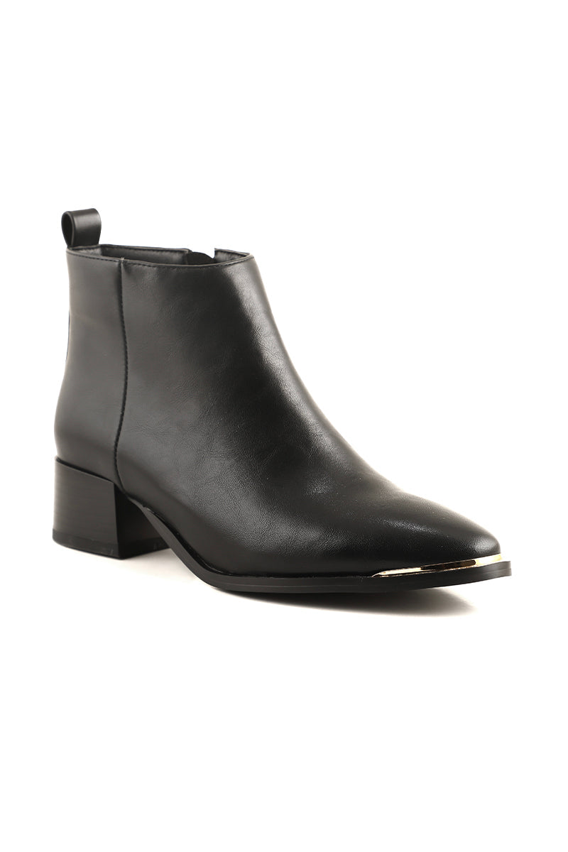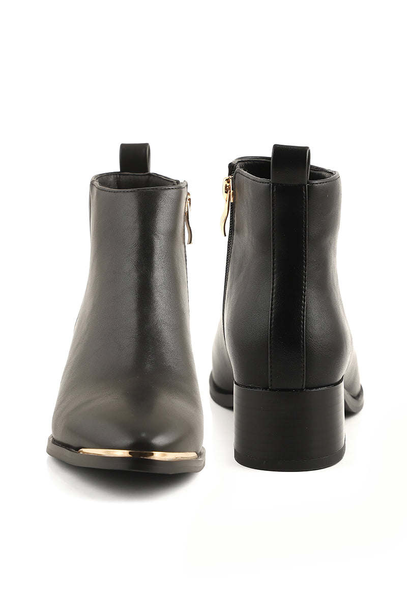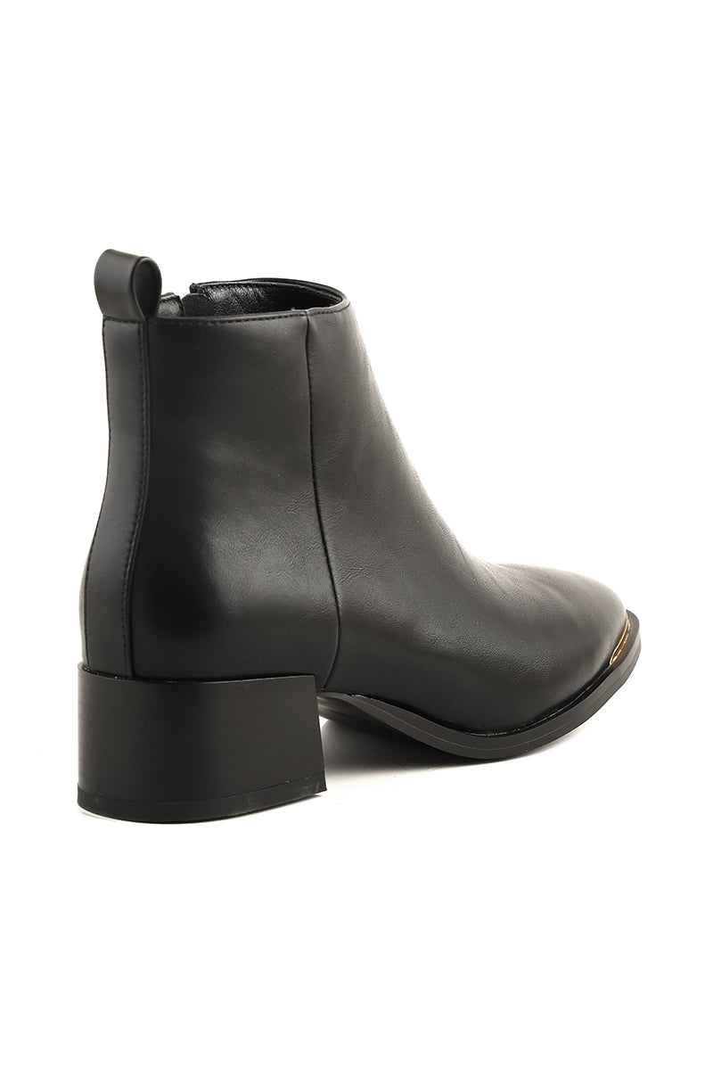 These black ankle boots are elegantly made with the fine leather, and then set to a closed almond toe shape.
