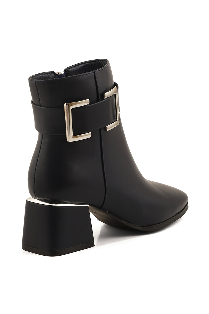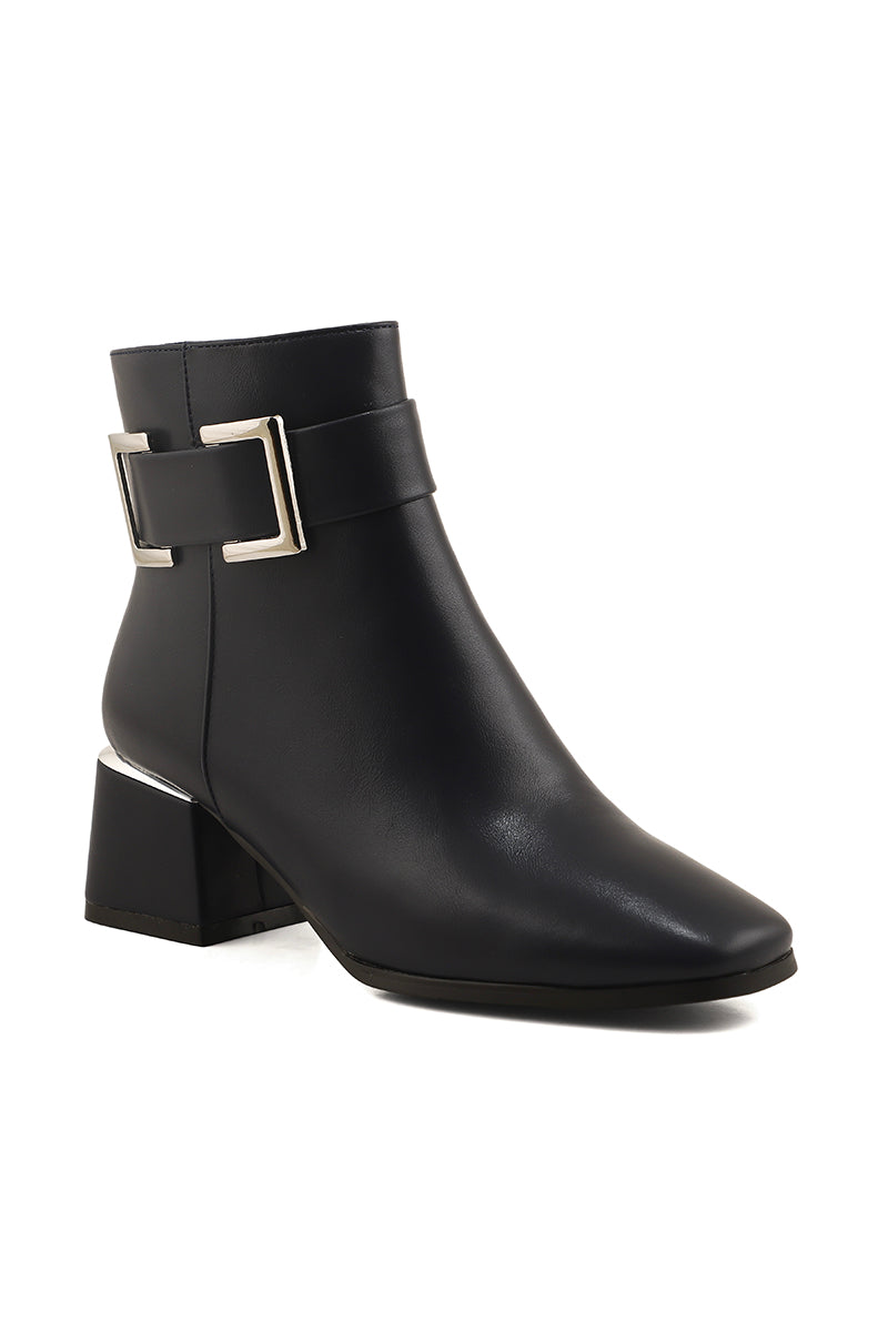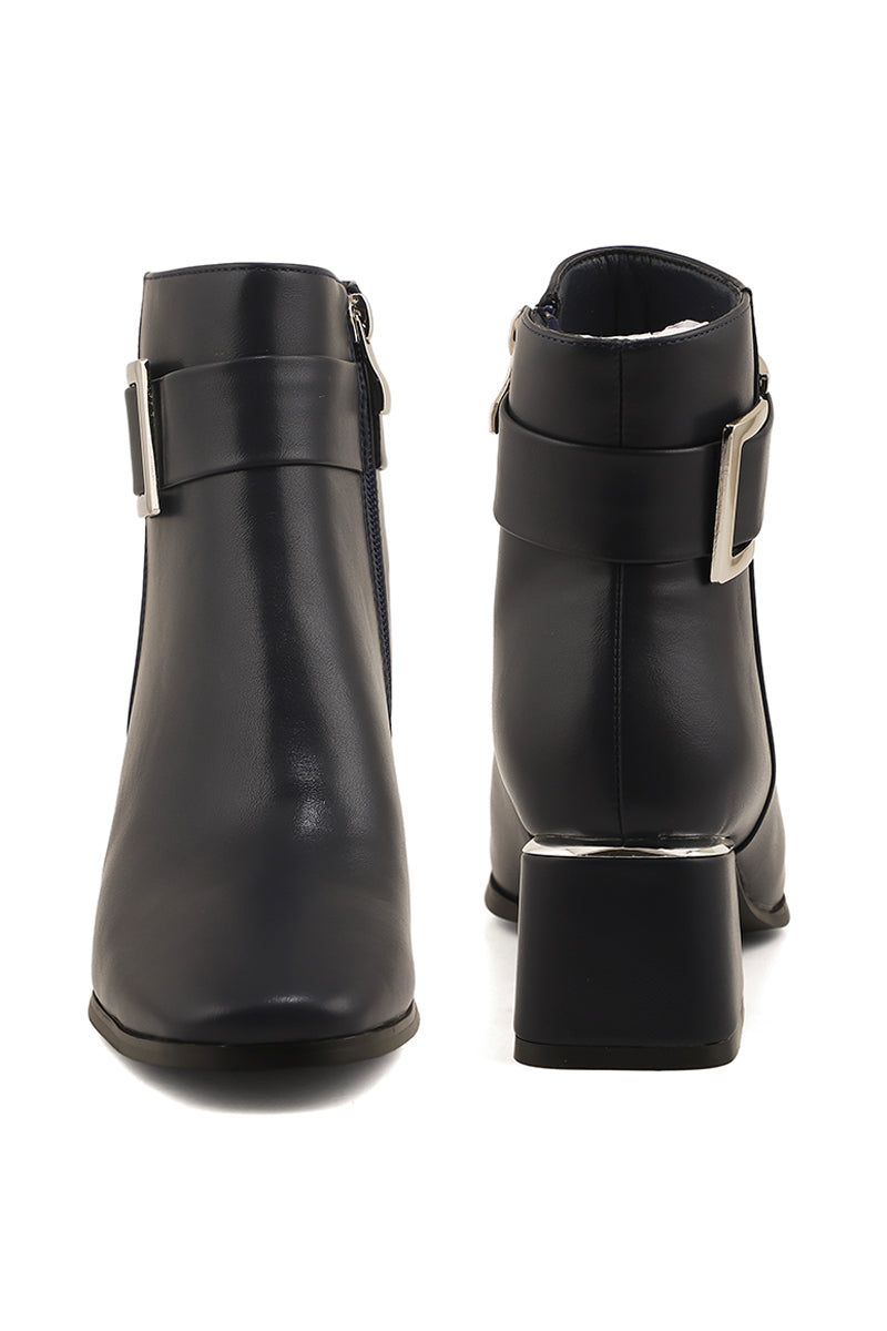 These navy colored ankle boots are finely crafted with the genuine leather, having a buckle embellishment at ankle and then set over a sturdy block heel.
