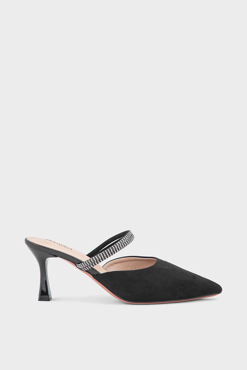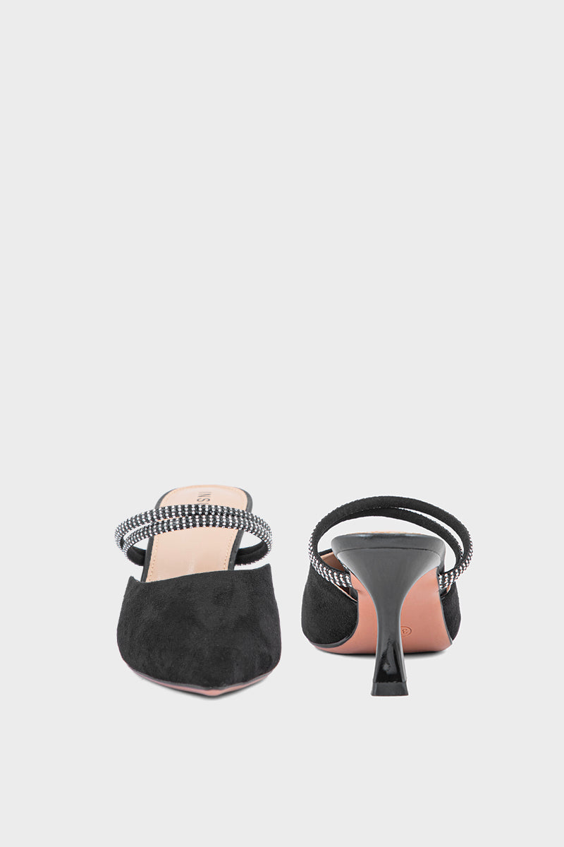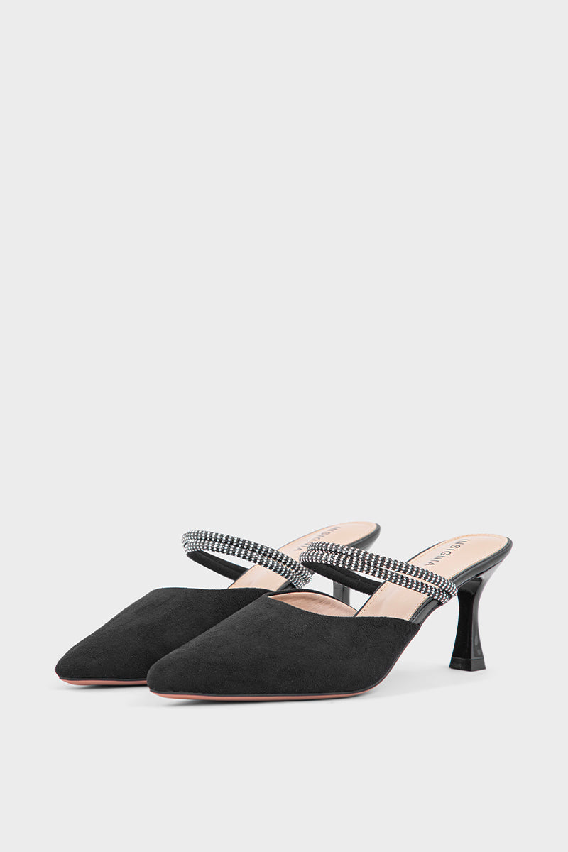 Chic black formal mules offering a sleek design and comfort, ideal for completing your elegant outfits.