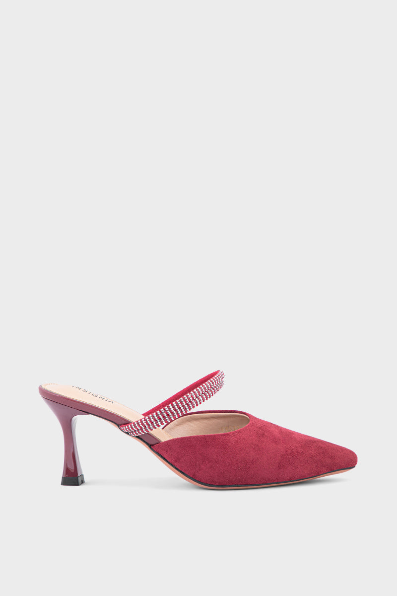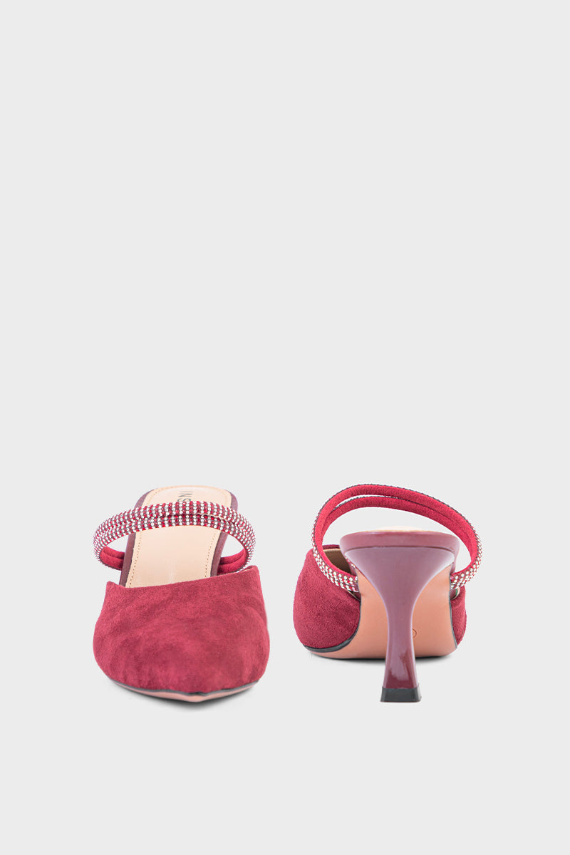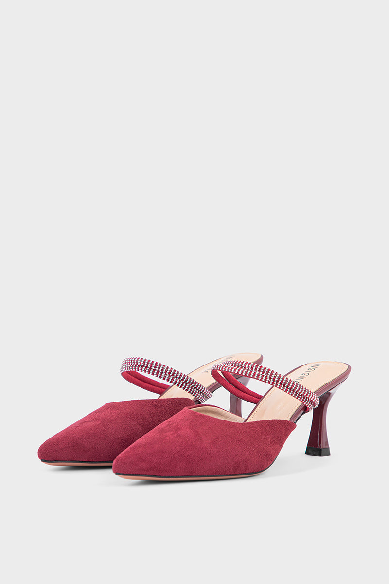 Chic burgundy formal mules offering a sleek design and comfort, ideal for completing your elegant outfits.