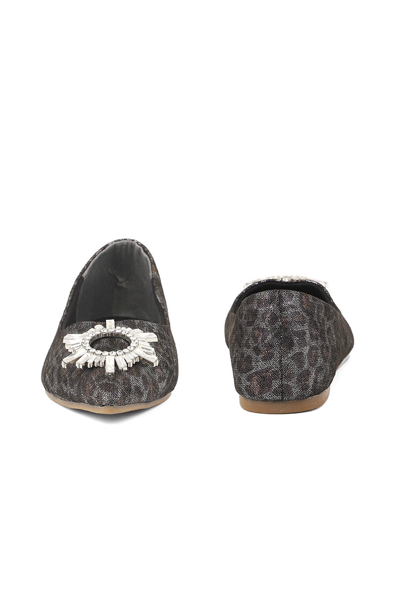 These animal print silver pumps are made with the leather, adorned with a buckle at top and then shaped to a sharp pointed toe.