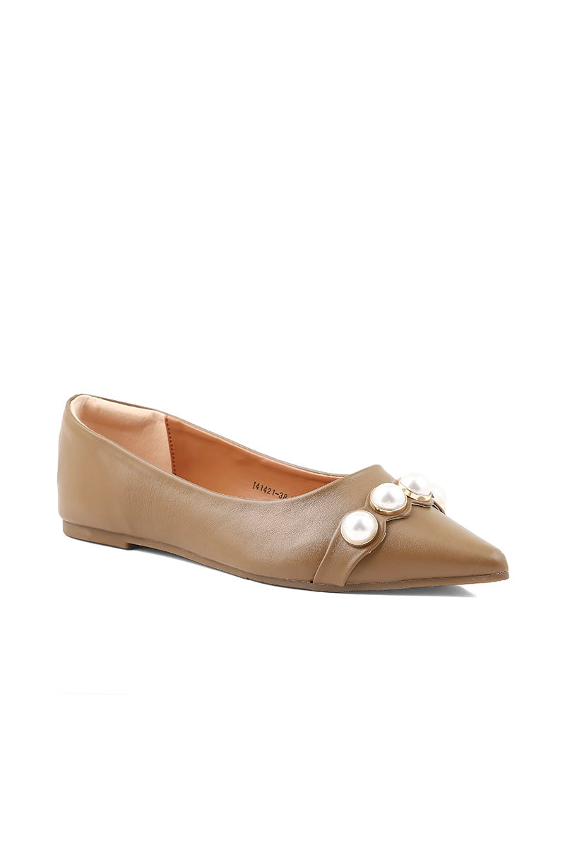 These coffee colored pumps are made with the blend of two hues dark and light, shaped to a sharp pointed toe and then set over a flatform base.