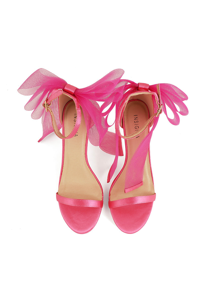 These pink heels are made with th esatin slender straps having net embellishment at the back and then set over a medium level heel.