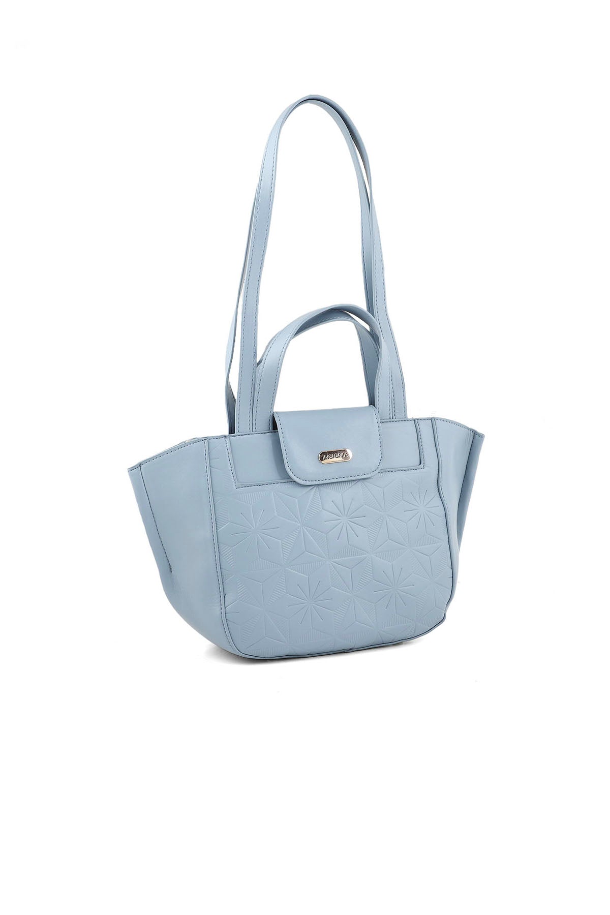 A blue tote bag with a minimalist design and spacious interior, perfect for everyday use.