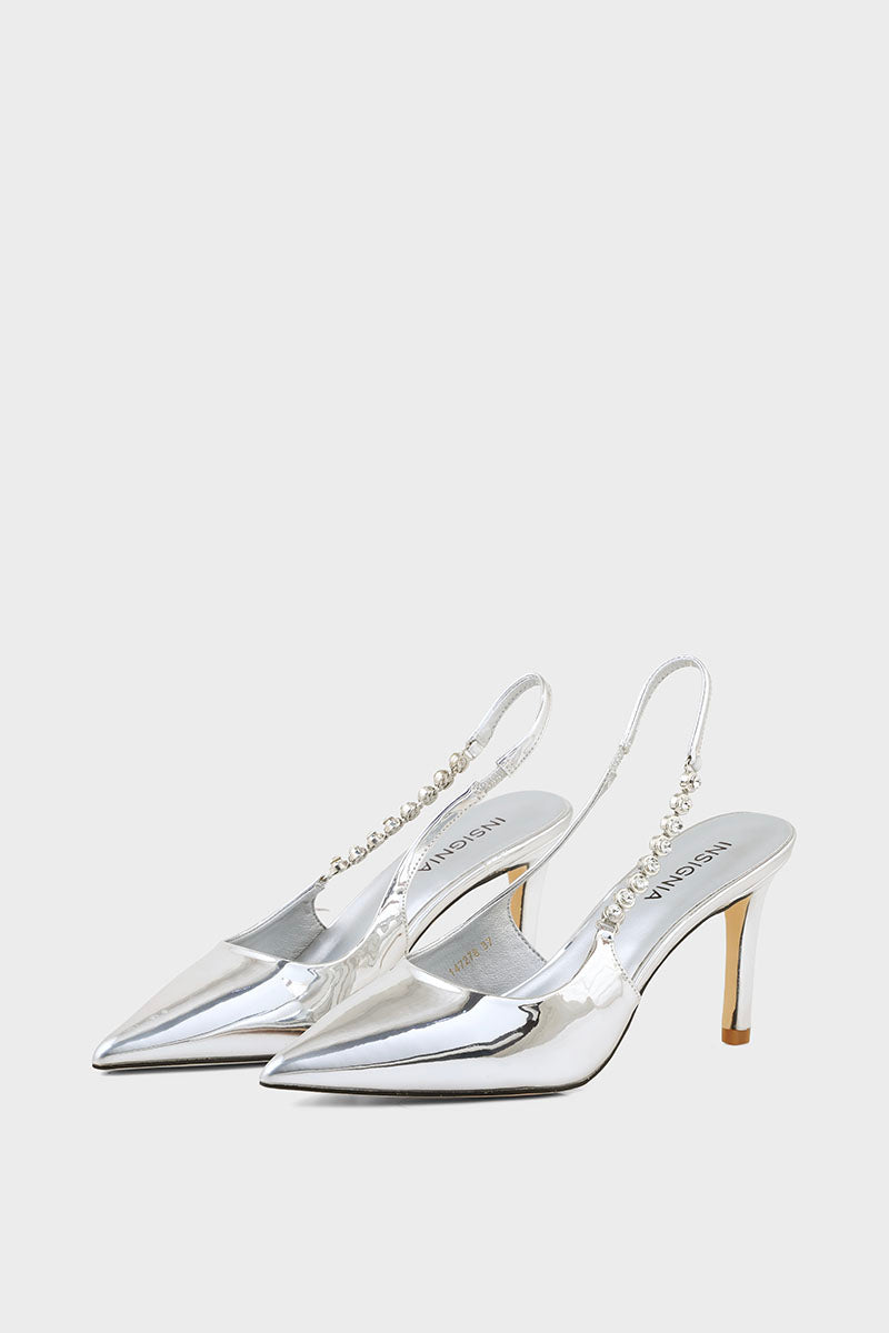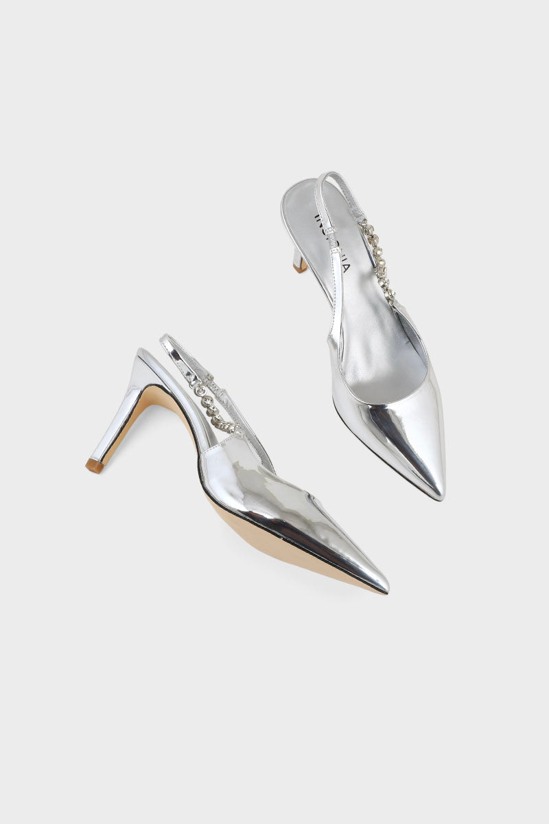 Unleash your style with our Silver Formal Sling Back shoes, a trendy and bold choice for standing out at formal events.