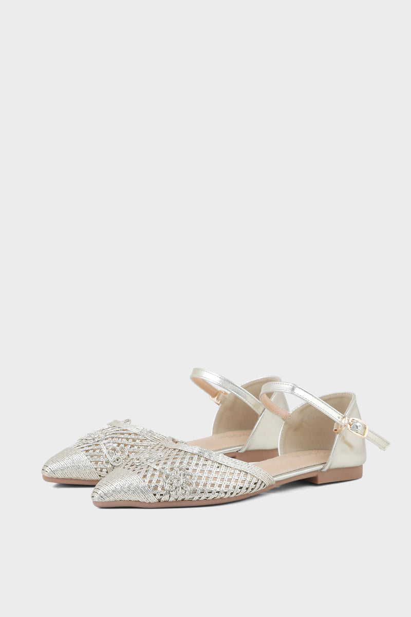 Step into sophistication with these elegant golden formal slingbacks, perfect for adding a luxurious touch to your ensemble.