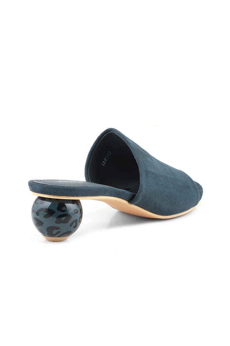 These gorgeous blue slides are constructed with the wide suede strap that beautifully covers the entire foot area except the toes, since it is finished to an open rounded shape at front.