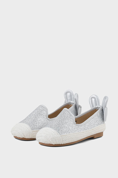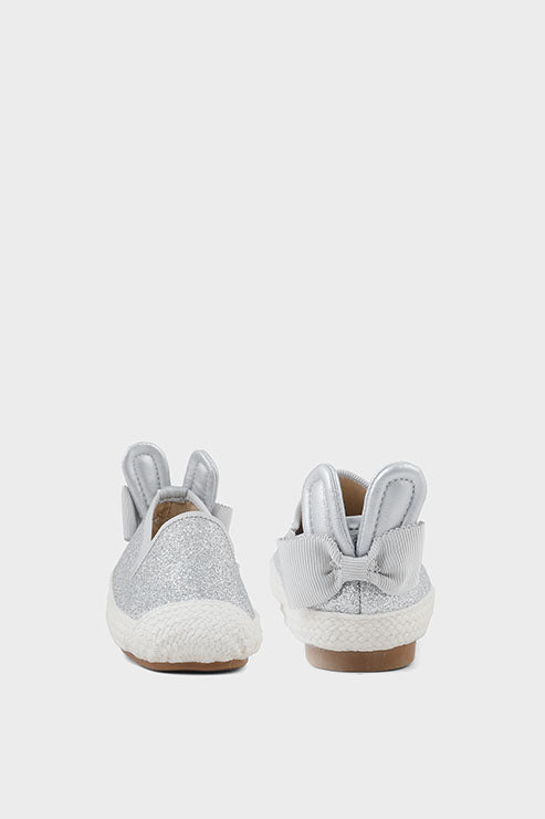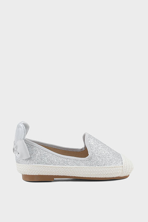Fashionable silver casual canvas shoes for girls, adding a touch of glamour to their outfit.