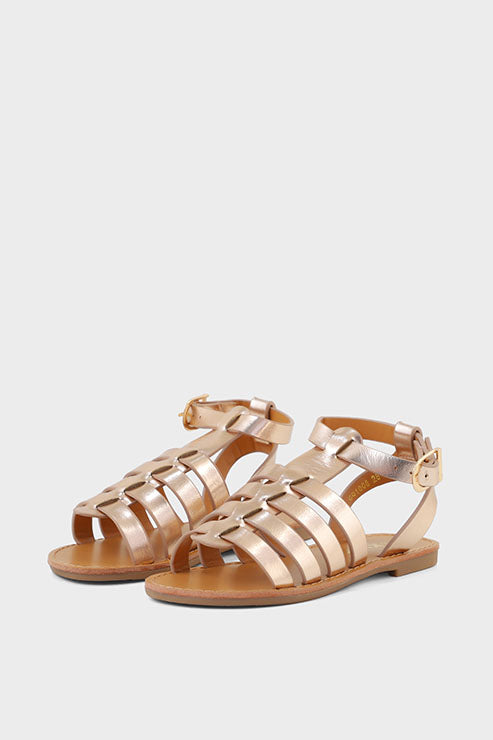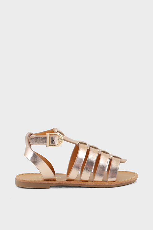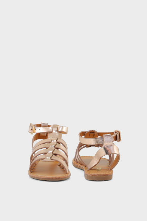 Fashionable rose gold casual sandals for girls, perfect for adding a touch of glamour to their outfit.