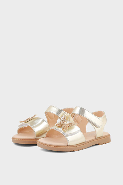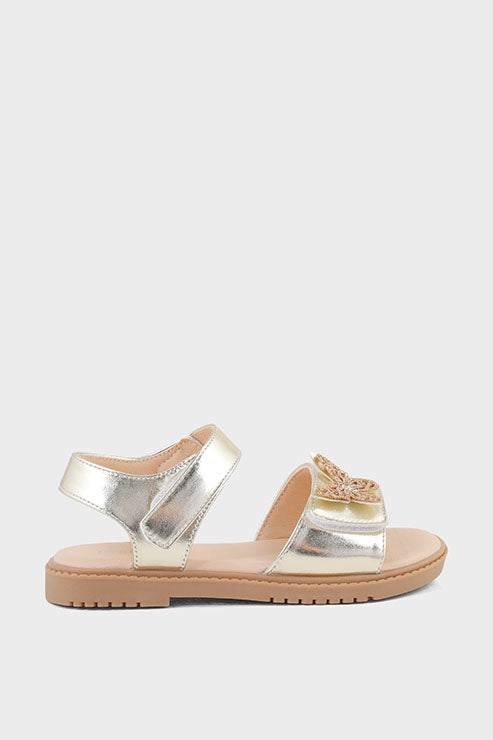 Trendy golden casual sandals for girls, adding a touch of glamour to their outfit.