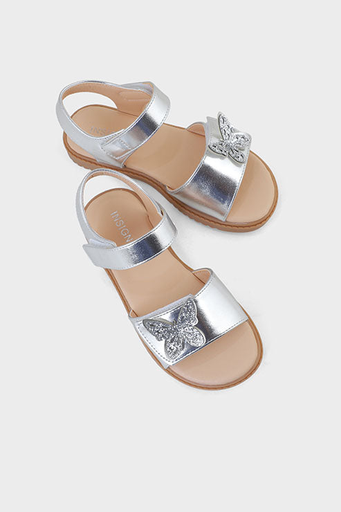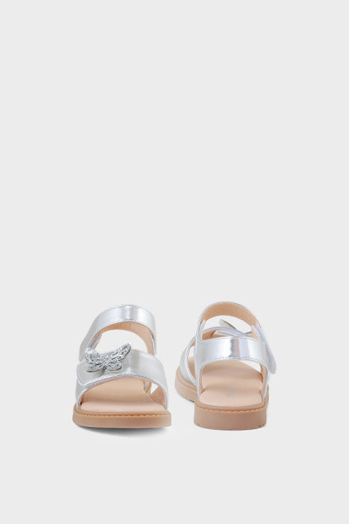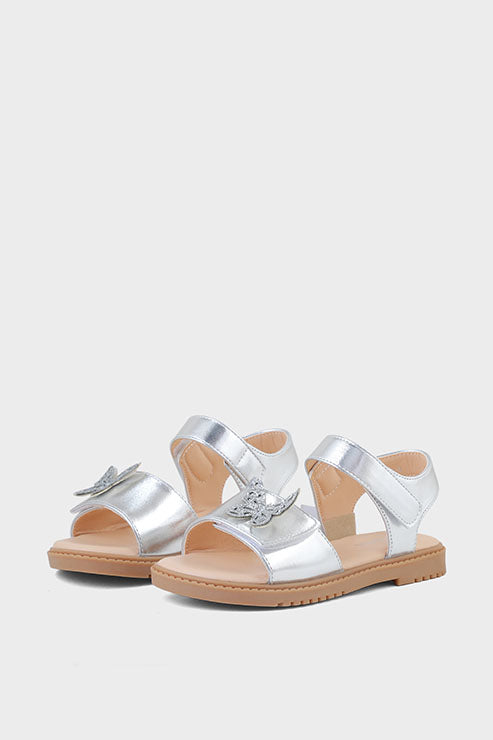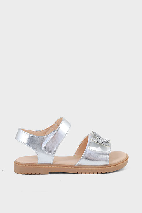 Trendy silver casual sandals for girls, adding a touch of glamour to their outfit.