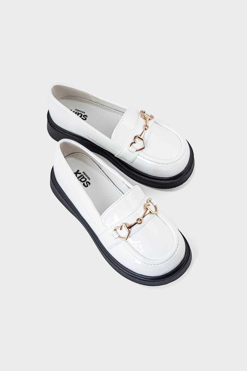 Elegant lvory formal loafers for girls, combining sophistication and comfort for formal occasions.