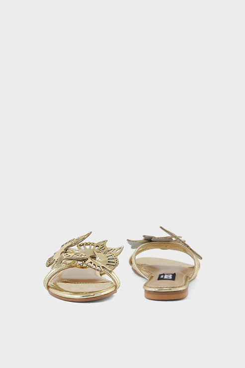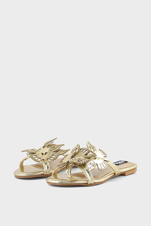 Elegant golden formal slip-on shoes for girls, adding a touch of glamour to their outfit.