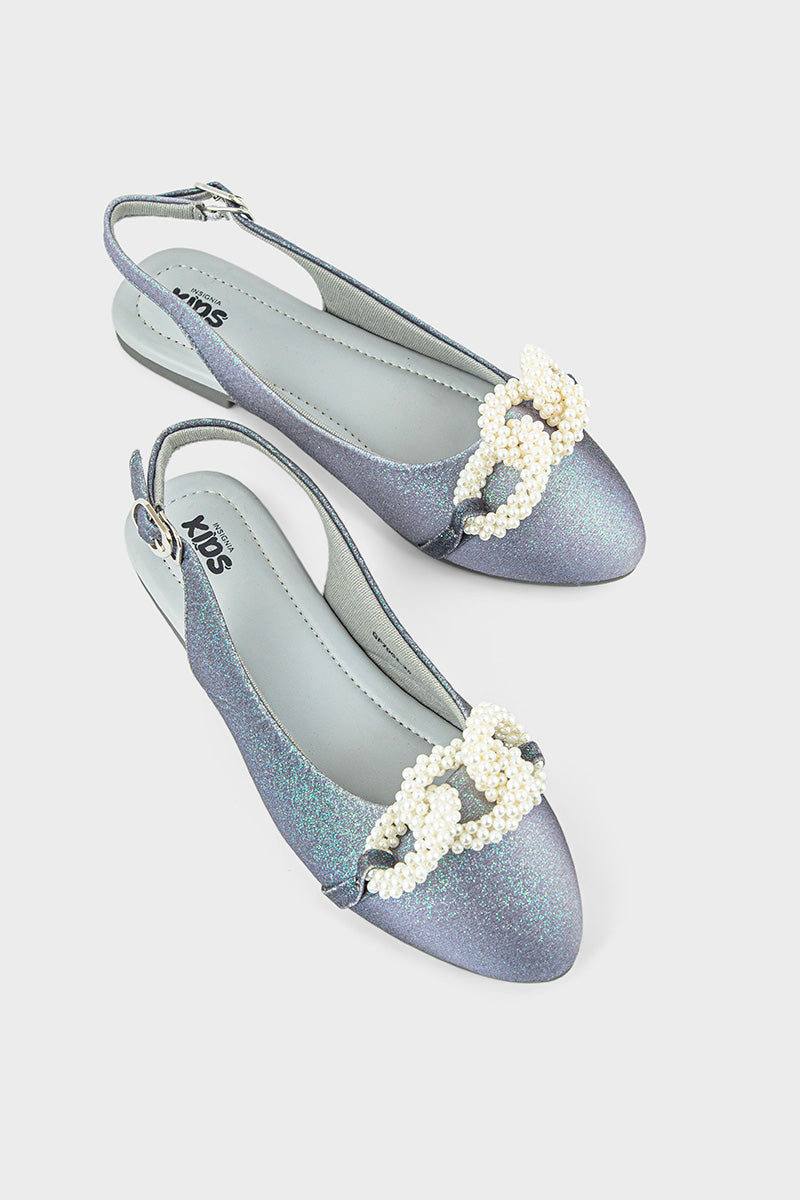Description: Cute grey sling-back shoes perfect for girls’ party wear and special events.