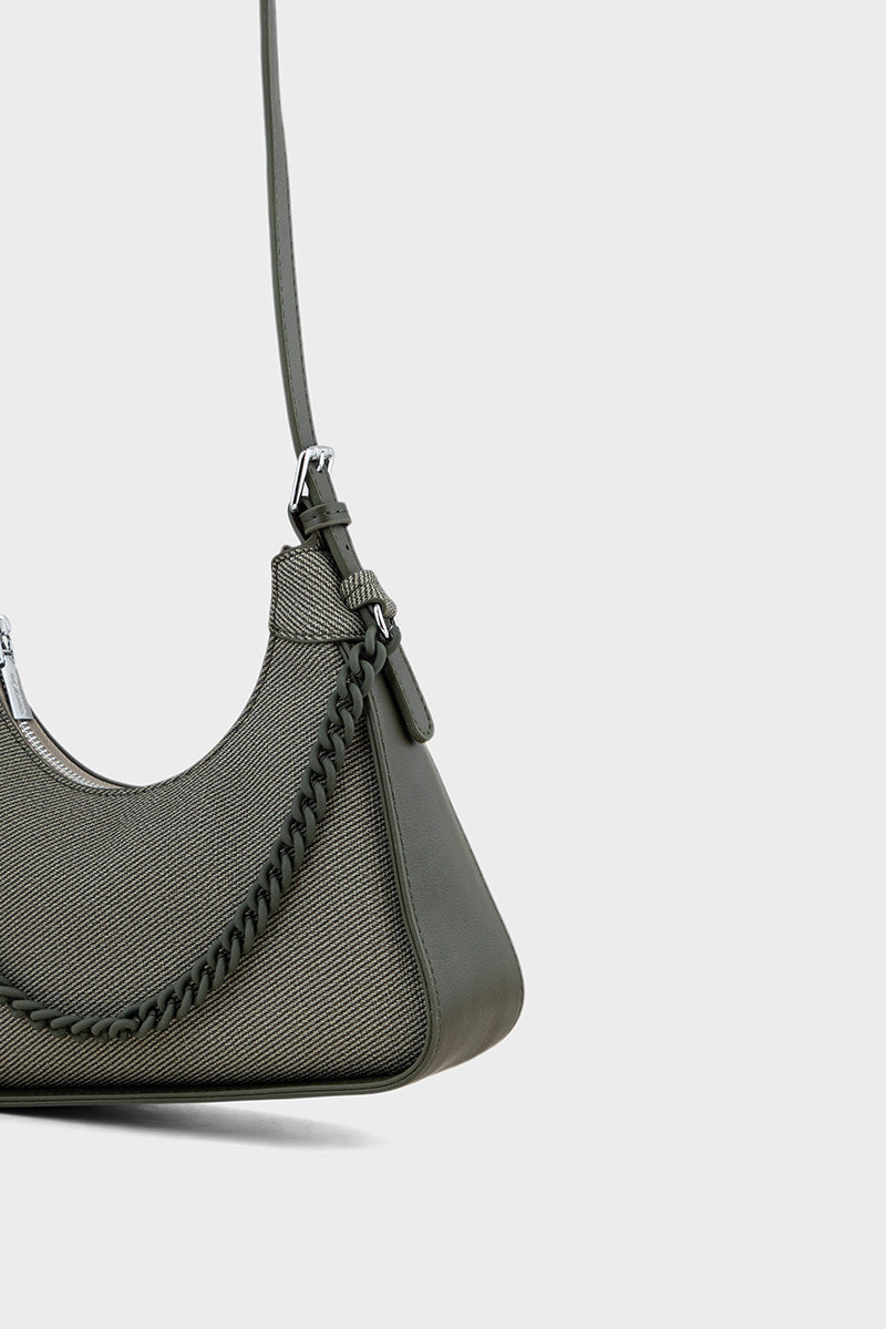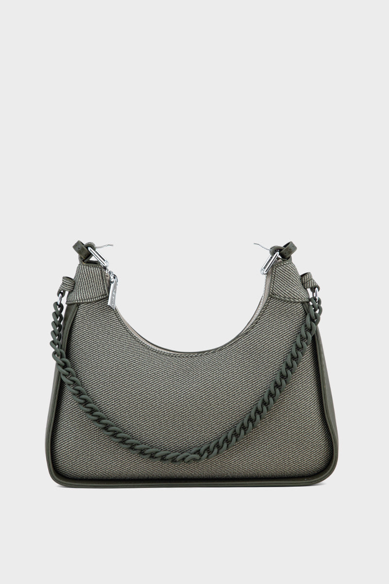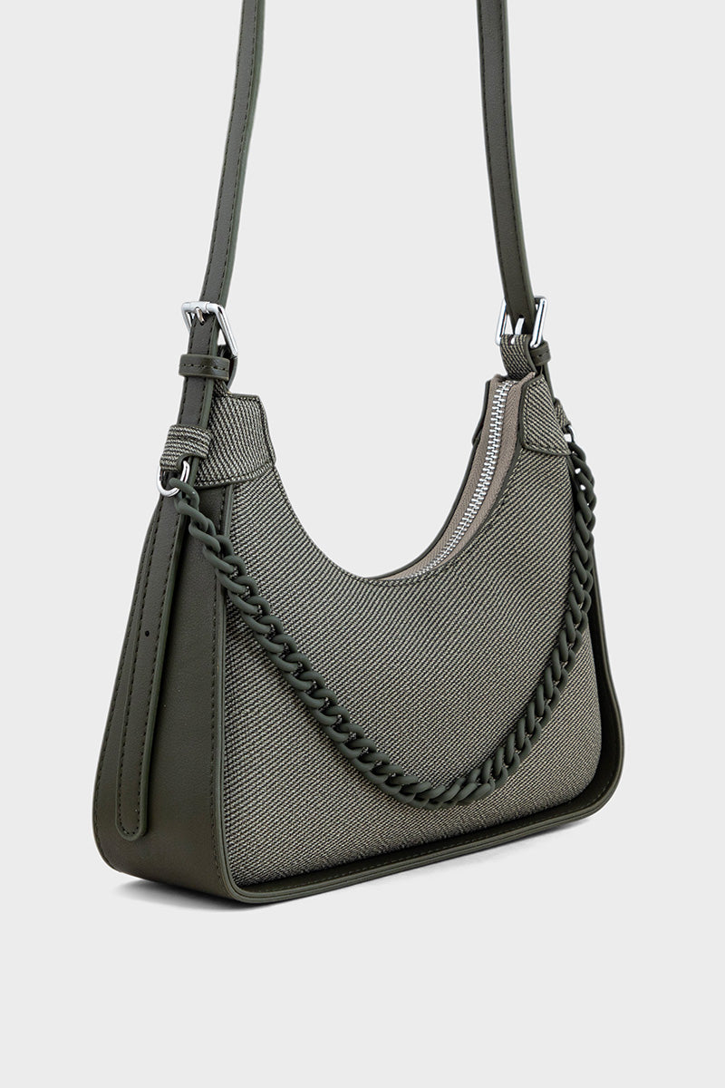 Description: Trendy olive hobo handbag with a relaxed silhouette for casual outings.
