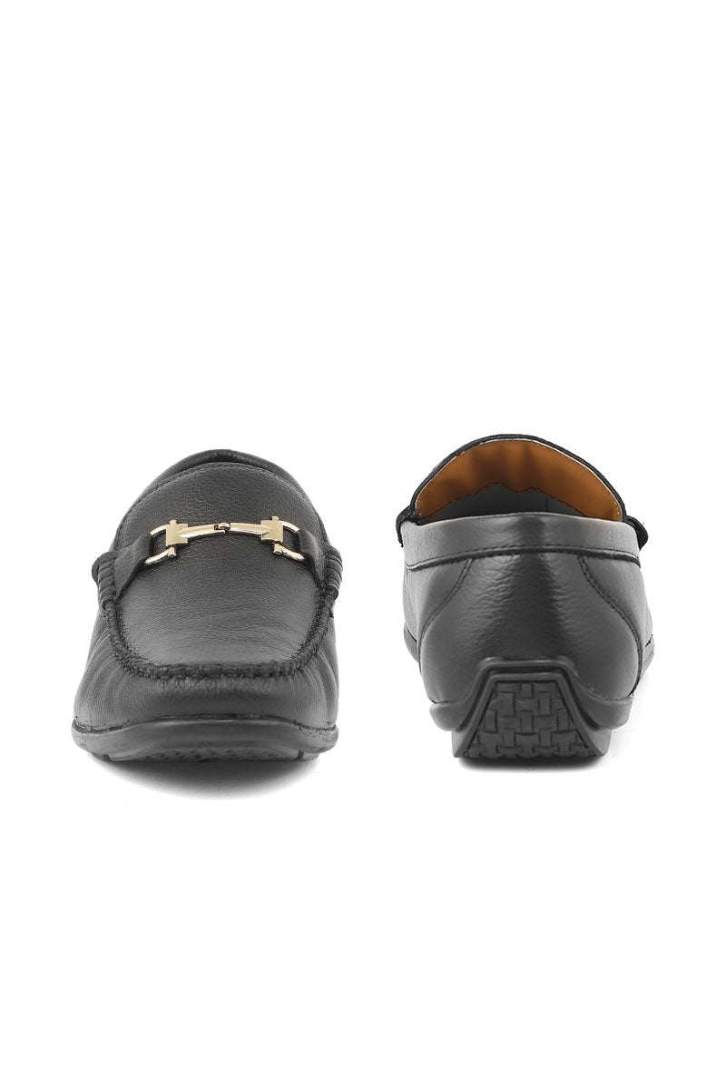 These black men shoes are made with the quality leather, having adornment of horse-bit at top and then shaped to an open toe.