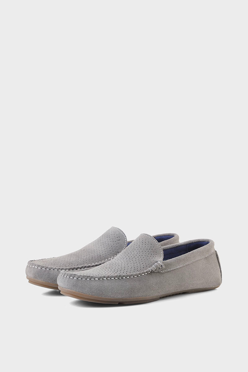 Men's grey casual driving moccasins, perfect for achieving a versatile and stylish look.