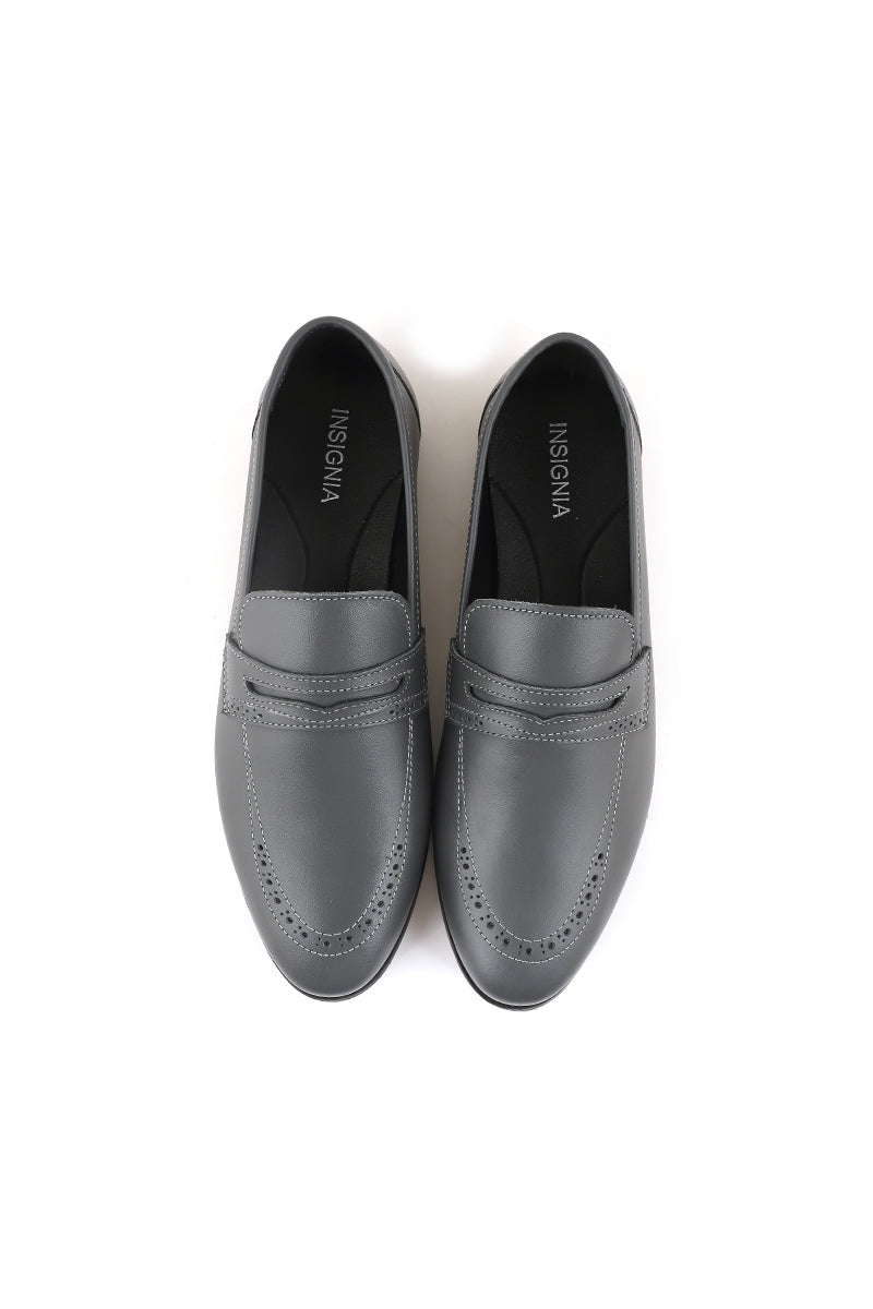 These grey moccains are made with the plain fine leather, adorned with the penny strap and then shaped to an almond toe.